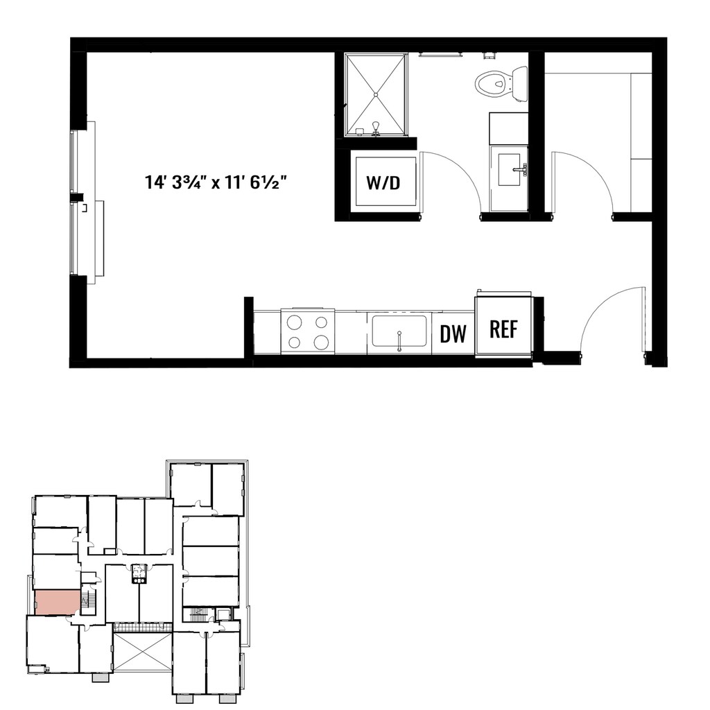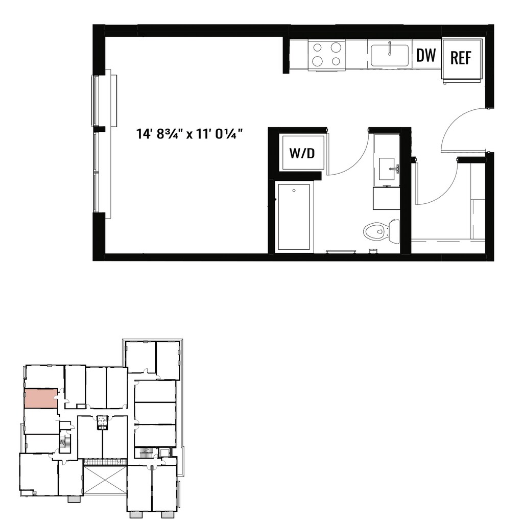 Sandstone S1 - Floorplan 1 Apartment Unit: 405Apartment Model: Sandstone S1$1,199Studio, 1 Bath, 415 sq ftAvailable Now![]()