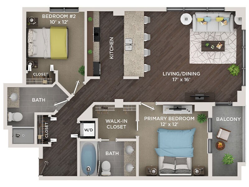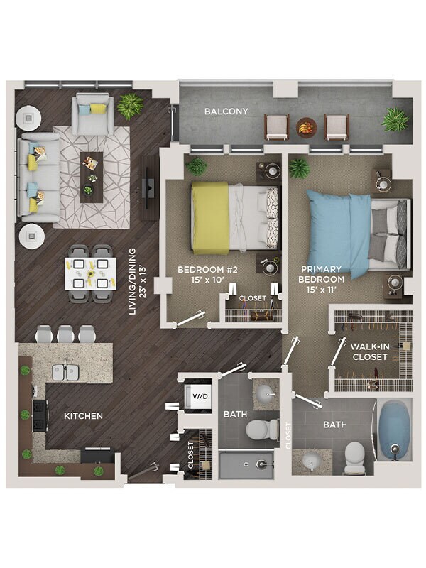 2 Beds, 2 Baths, 1200 sq ftAvailable NowModel Gallery