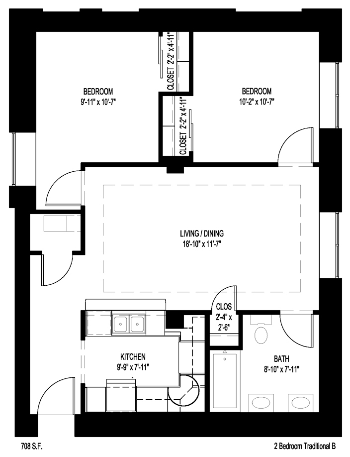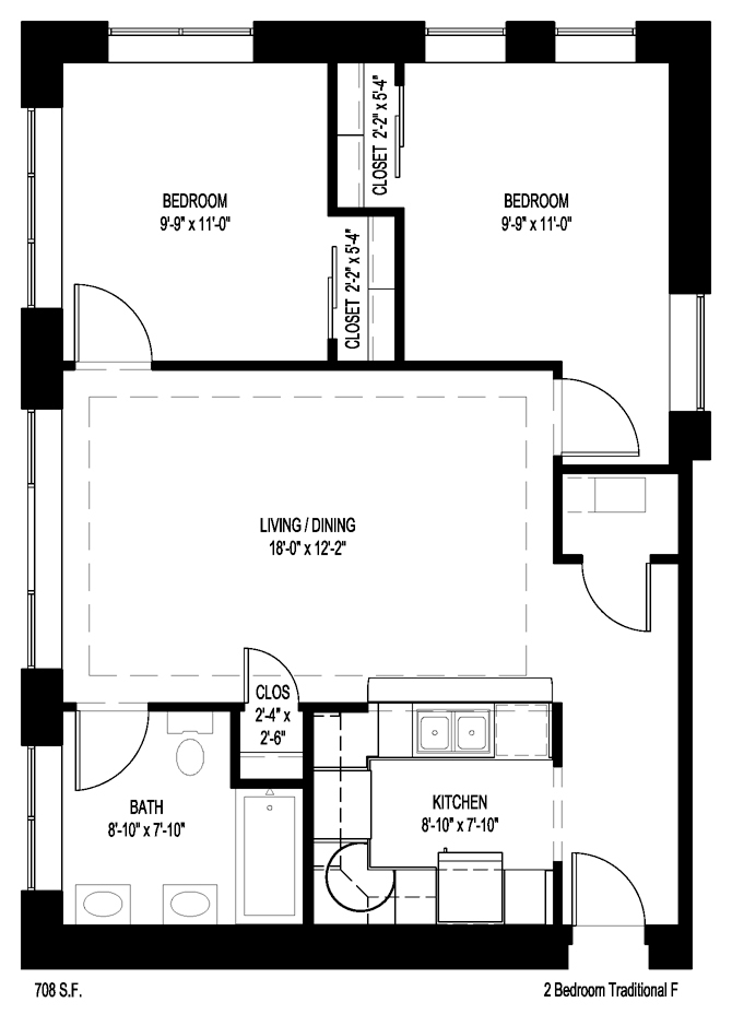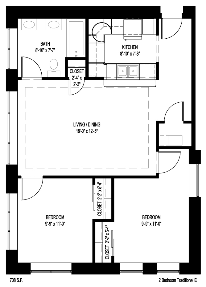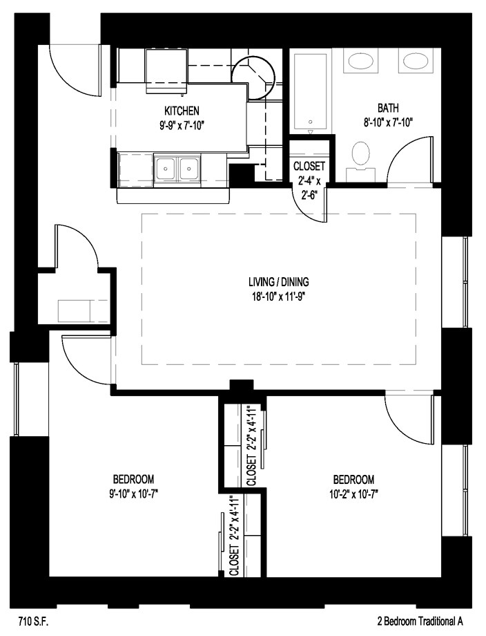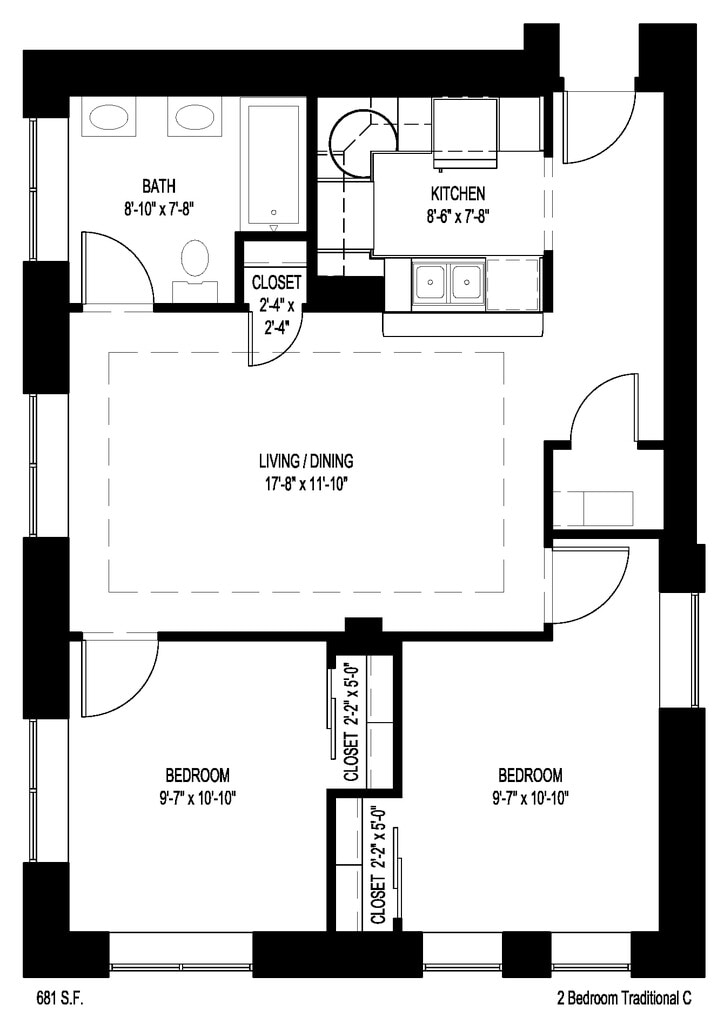 2 Beds, 1 Bath, 681-830 sq ftModel Gallery