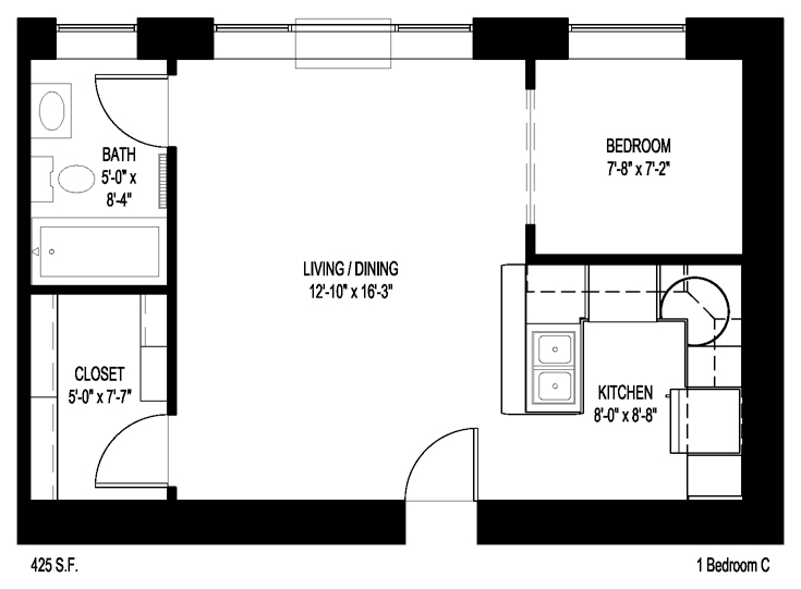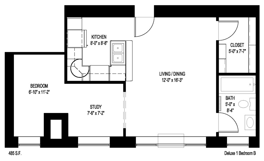 1 Bed, 1 Bath, 470-485 sq ftModel Gallery
