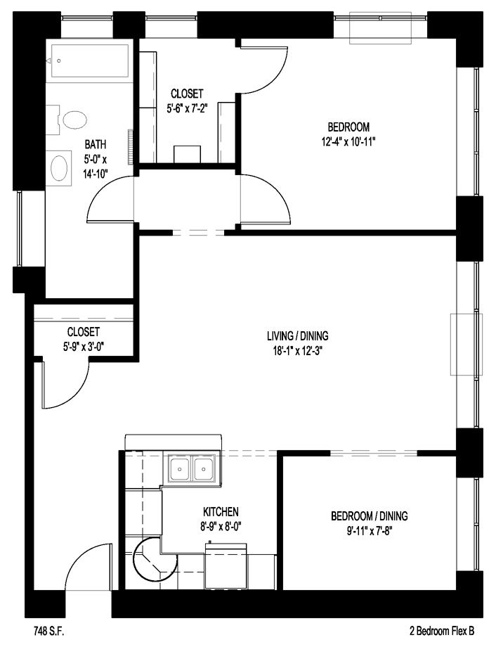 1 Bed, 1 Bath, 607-748 sq ftModel Gallery