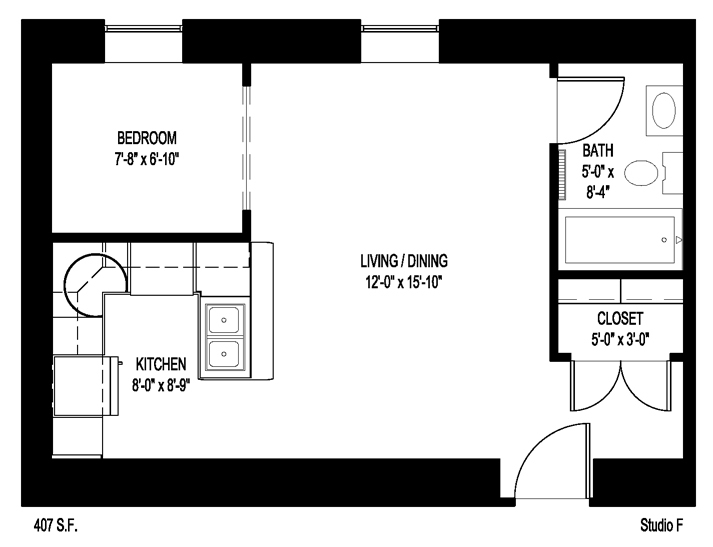 Studio, 1 Bath, 333-409 sq ftModel Gallery