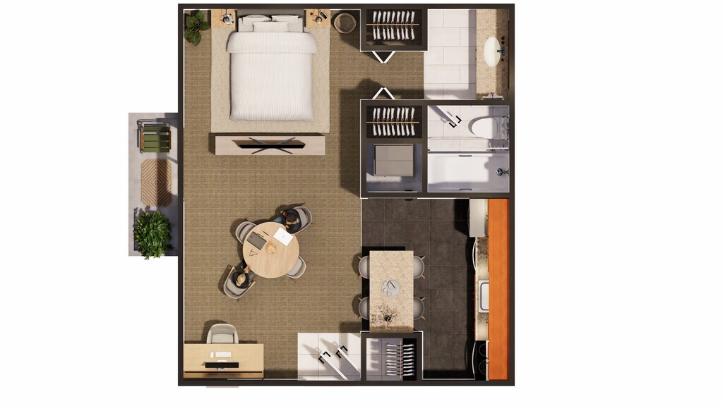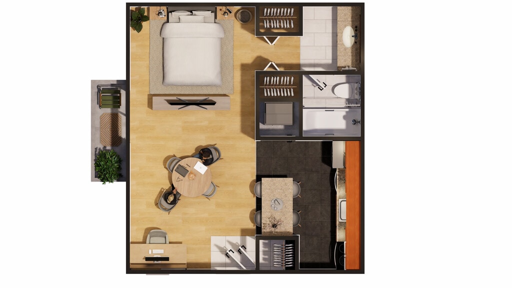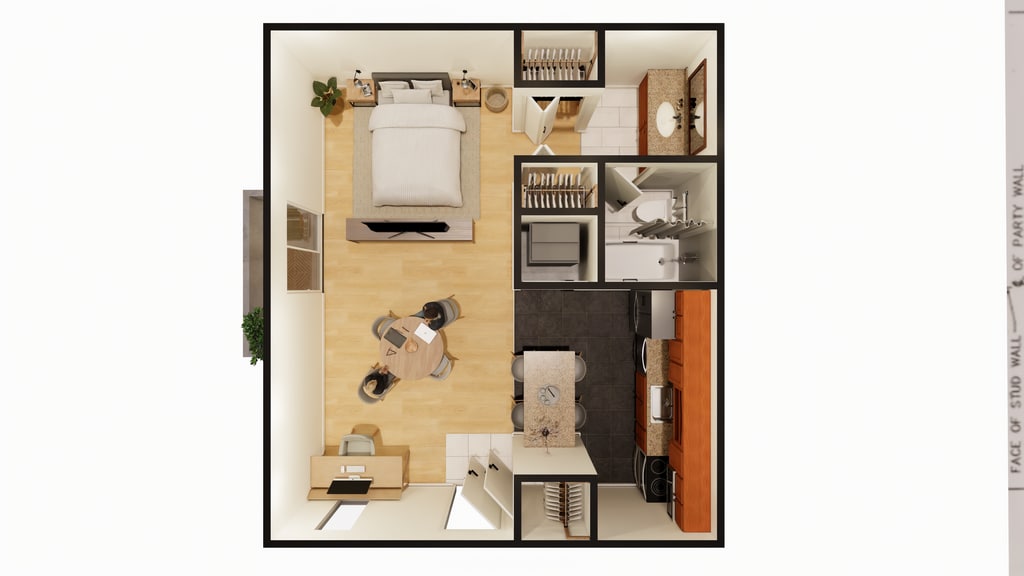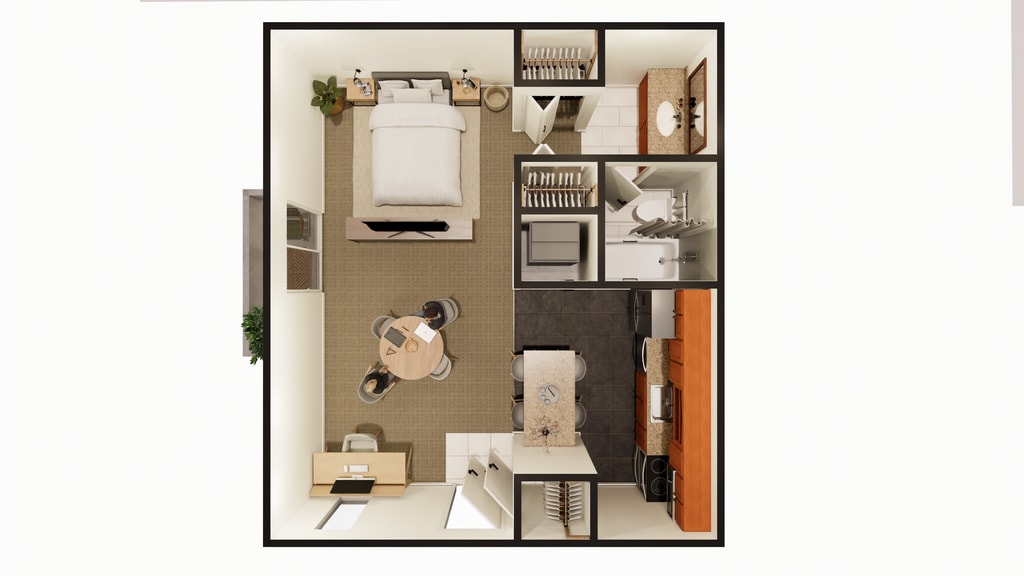 Studio, 1 Bath, 500-580 sq ftPlus FeesAvailable NowModel Gallery