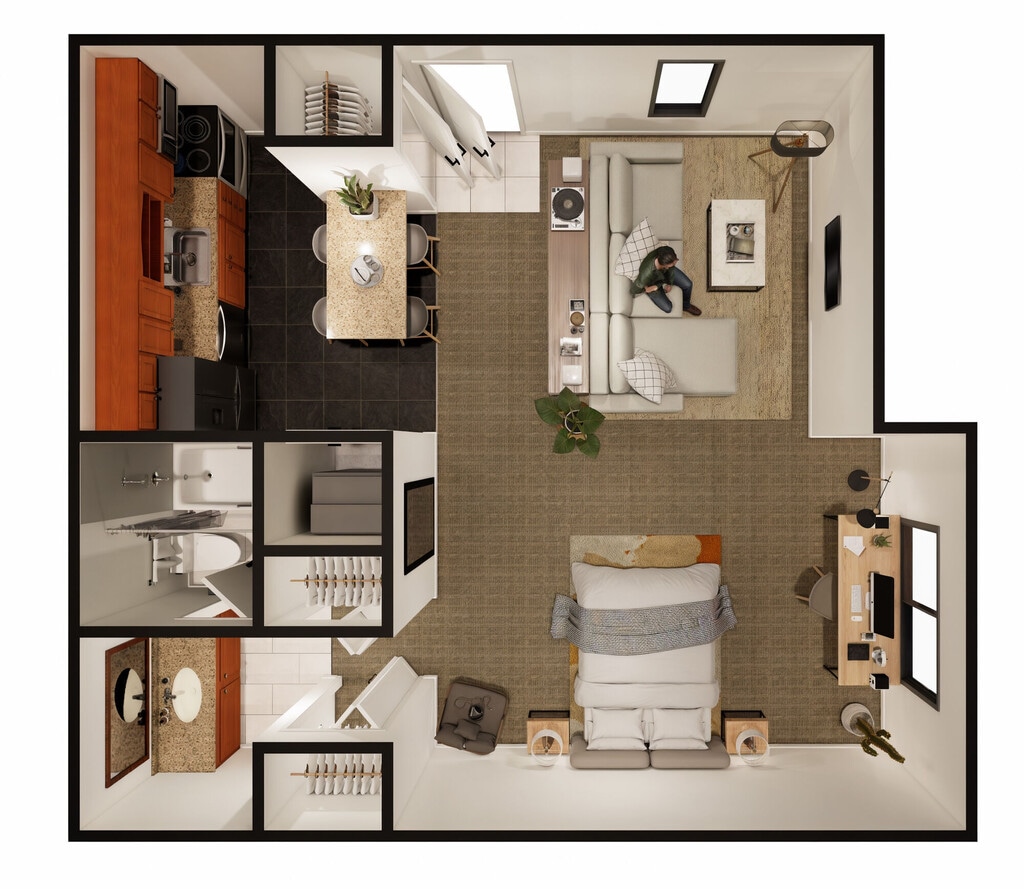 Studio, 1 Bath, 670 sq ftModel Gallery