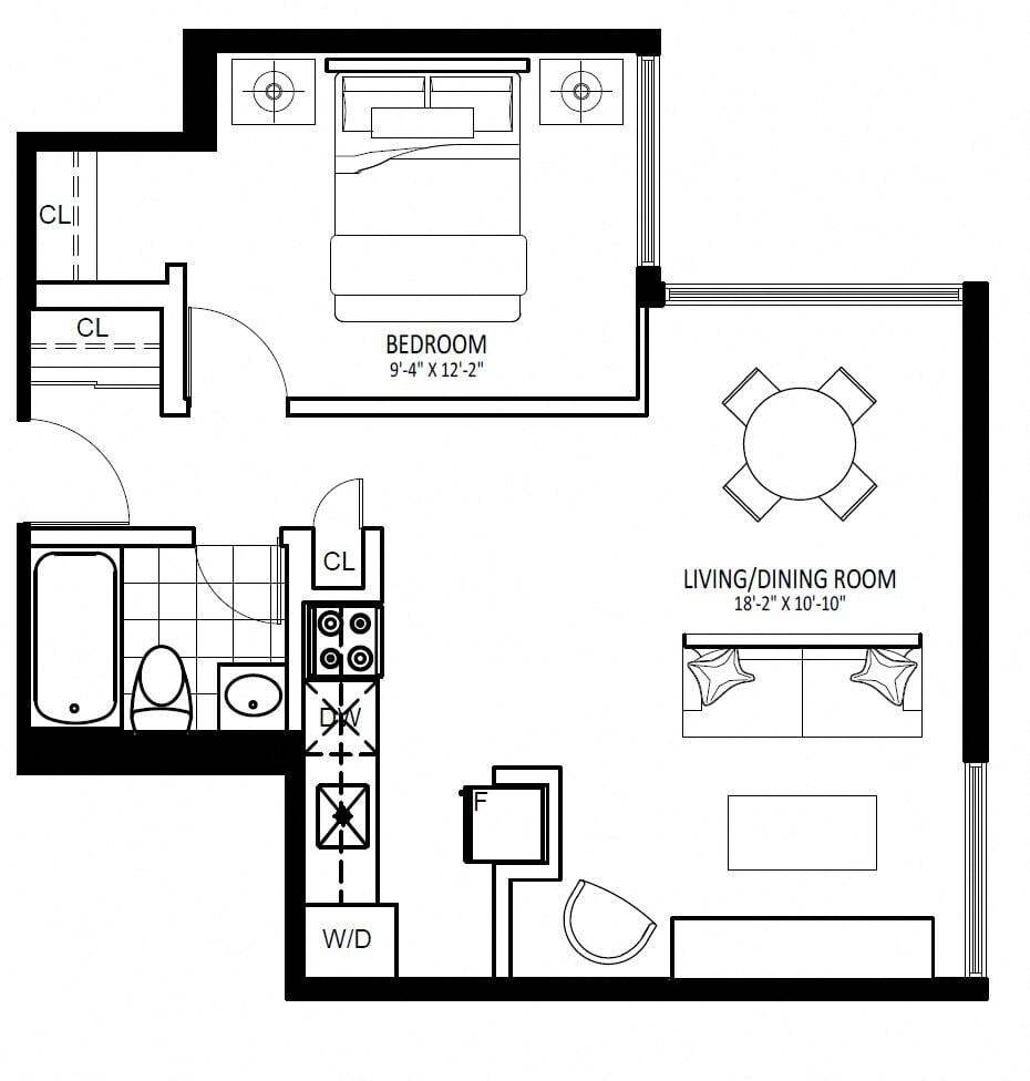 Apartment Model: The Sherlan - Plan AStudio, 1 Bath, 420 sq ftUnavailable![]()