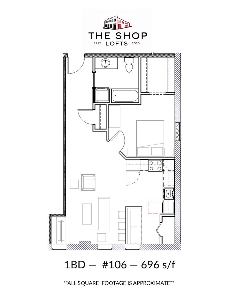 The Shop Lofts offers 1 Bedroom apartments starting from $1,375 and having 696 sq ft. Here is the current pricing and availability:
