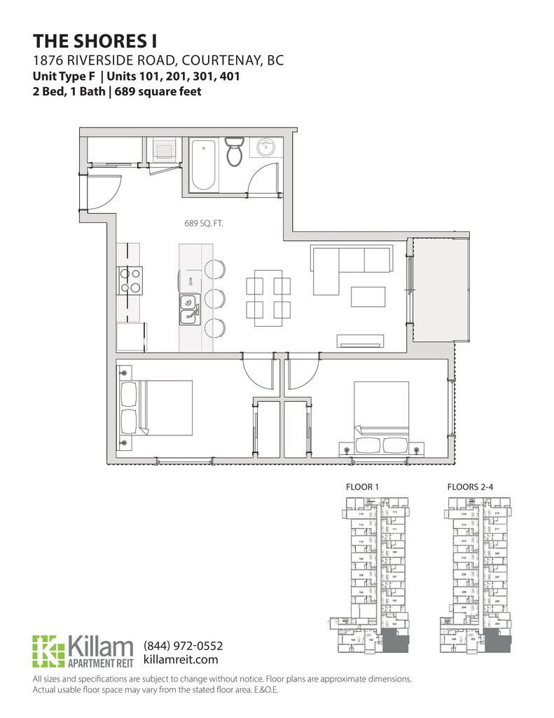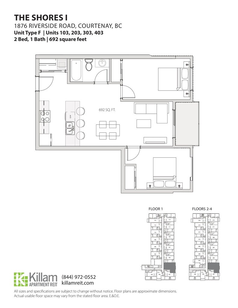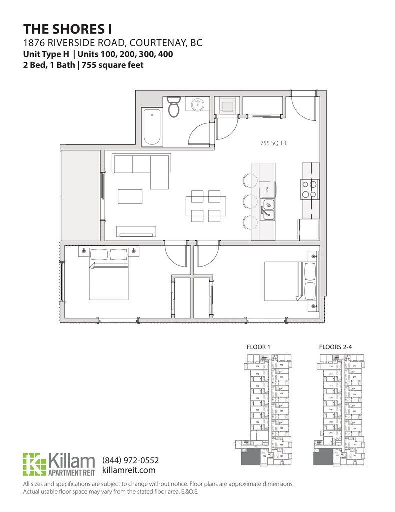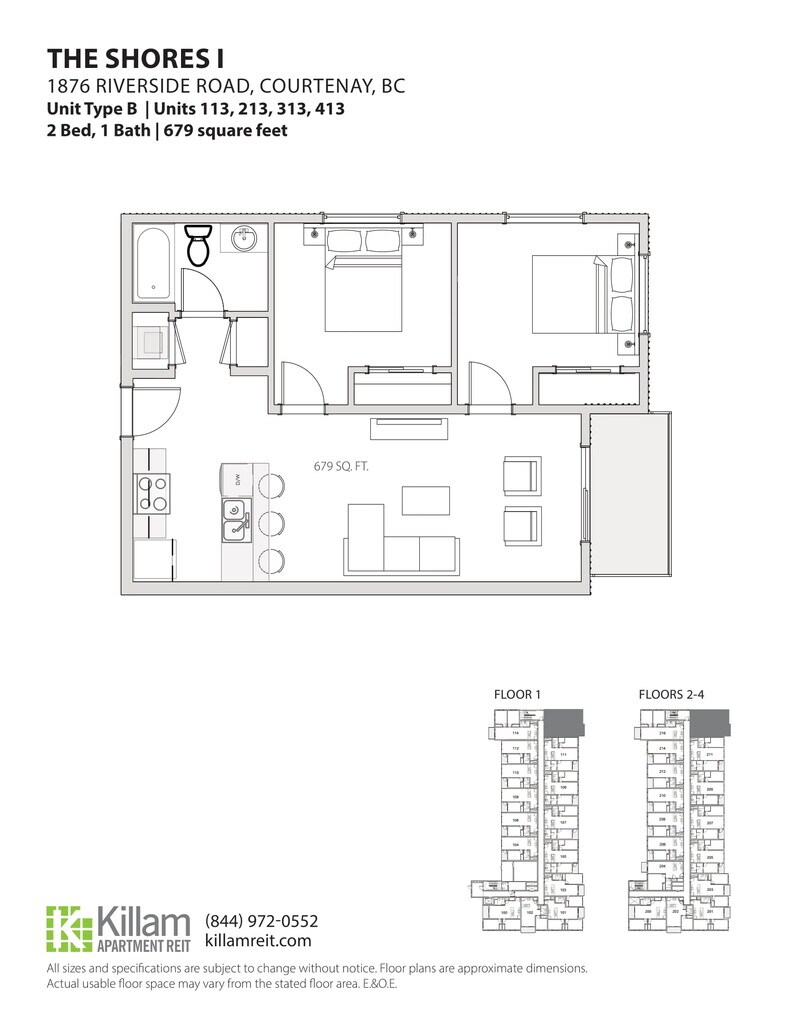 Join us for an OPEN HOUSE on Thursday, November 6th, from 11 AM 3 PM! Meet us at 1876 Riverside Ln, Courtenay BC and tour our beautiful apartments! **Limited-Time Offer: Move In Today & Don't Pay Until January 1st, 2026! Contact Us For Details.** Welcome home to The Shores. This beautiful, bright, modern building is within walking distance to downtown Courtenay, with all the shopping, restaurants, and amenities. Walk out the front door and onto the Riverway Heritage Walking Path. Our spacious one-one+den-two bedroom suites have in-suite washers/dryers, white quartz countertops in the kitchen and bathroom, high gloss white cabinetry, wide plank laminate flooring, and luxury vinyl in the bathroom. All apartments have air conditioning and balconies to enjoy. This building has keyless entry and security surveillance throughout the building and property.