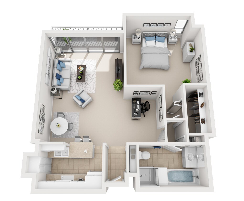 1 Bed, 1 Bath, 755 sq ftAvailable NowModel Gallery