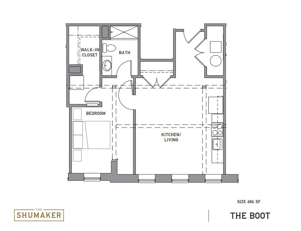 Price Availability Date Unit Sq Ft From $1,440 May 1, 2026 Boot 686 sq ft Model Amenities and Features