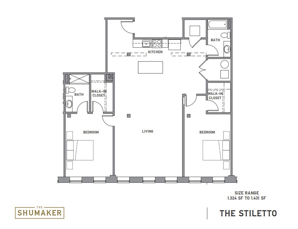 Apartment Model: StilettoFrom $2,1452 Bedroom, 2 Bath, 1324-1431 sq ftAvailable May 1, 2026![]()