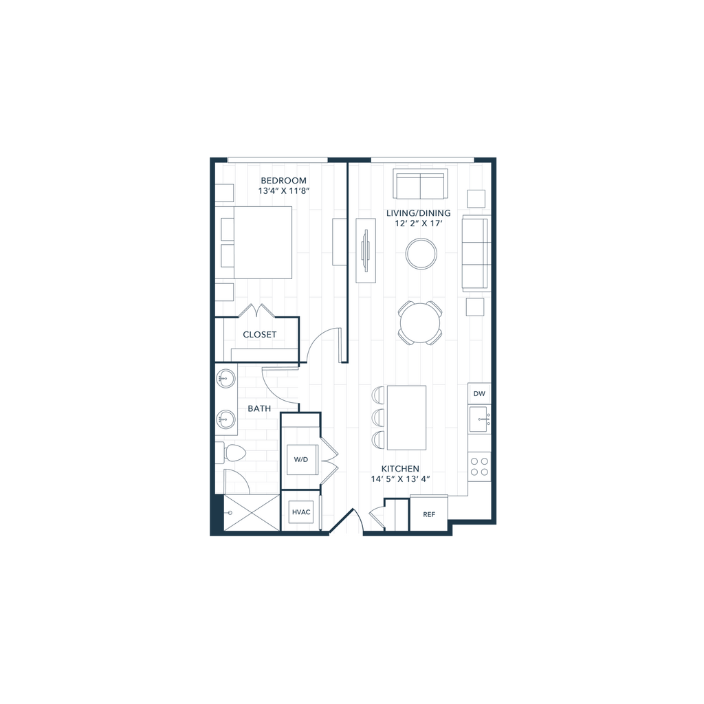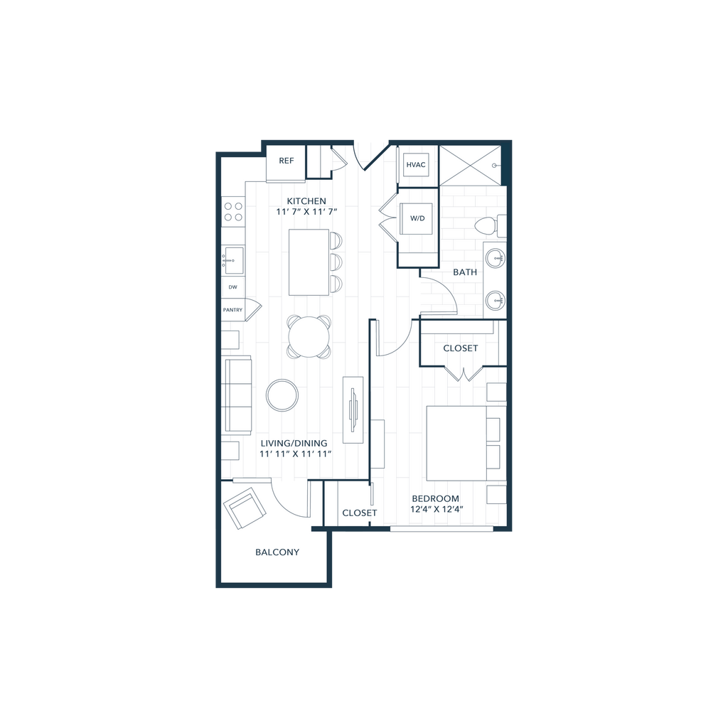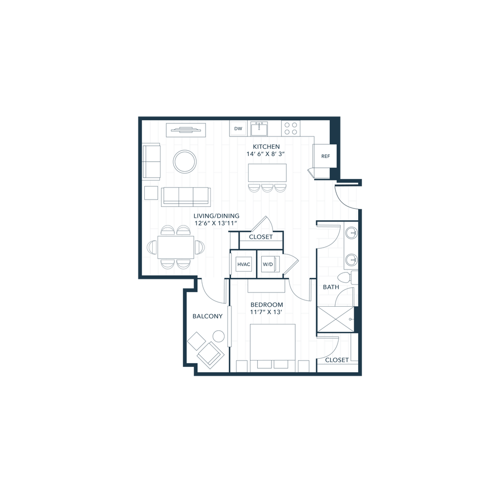1 Bed, 1 Bath, 640-647 sq ftAvailable NowModel Gallery