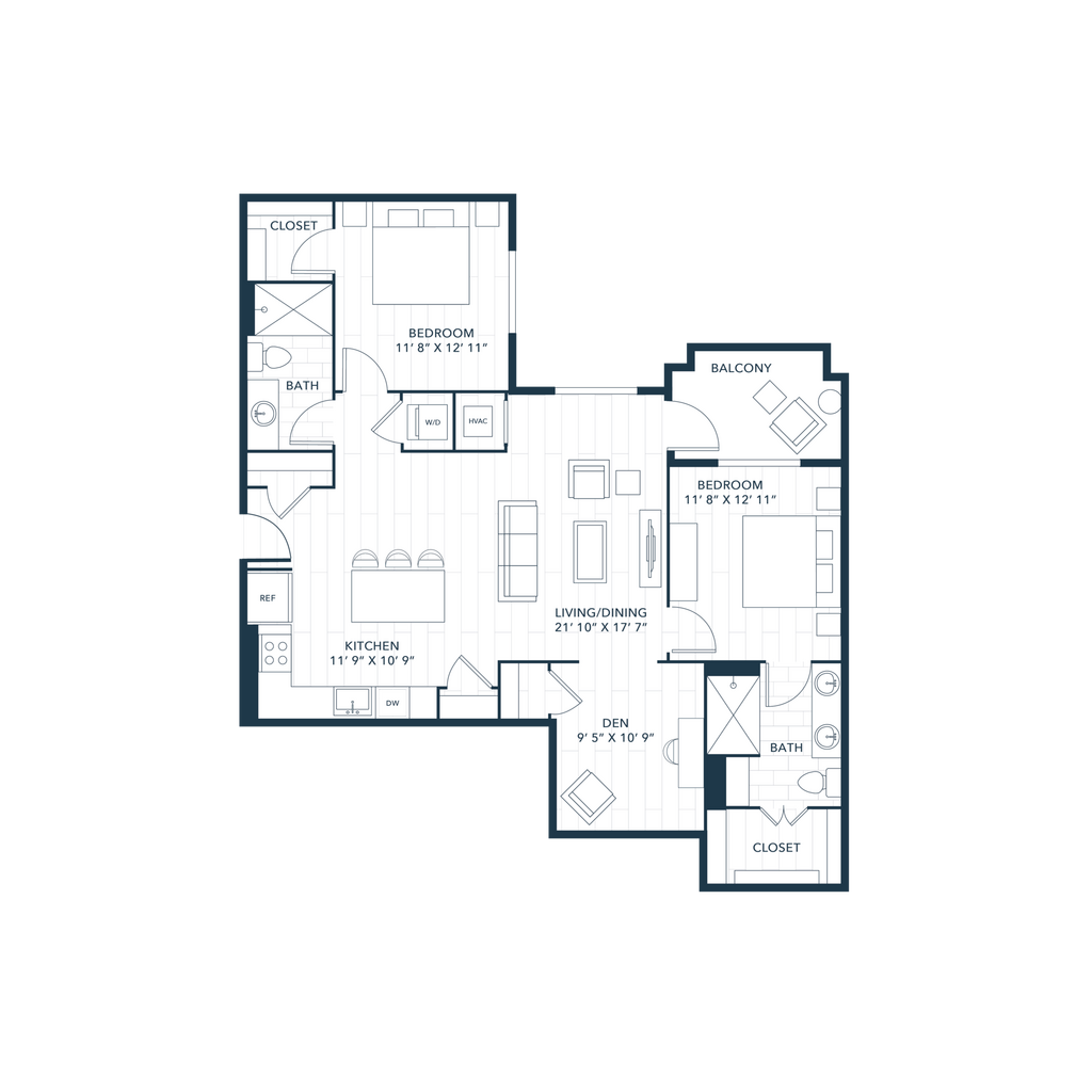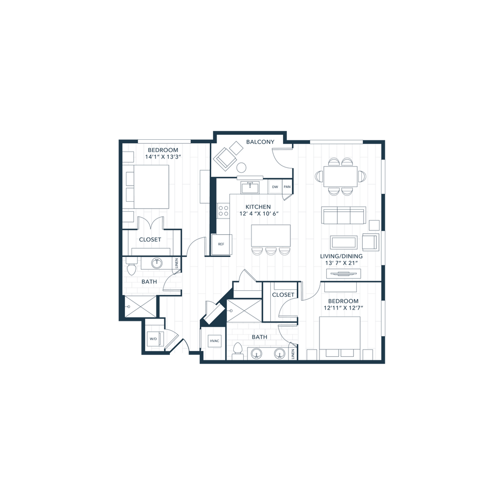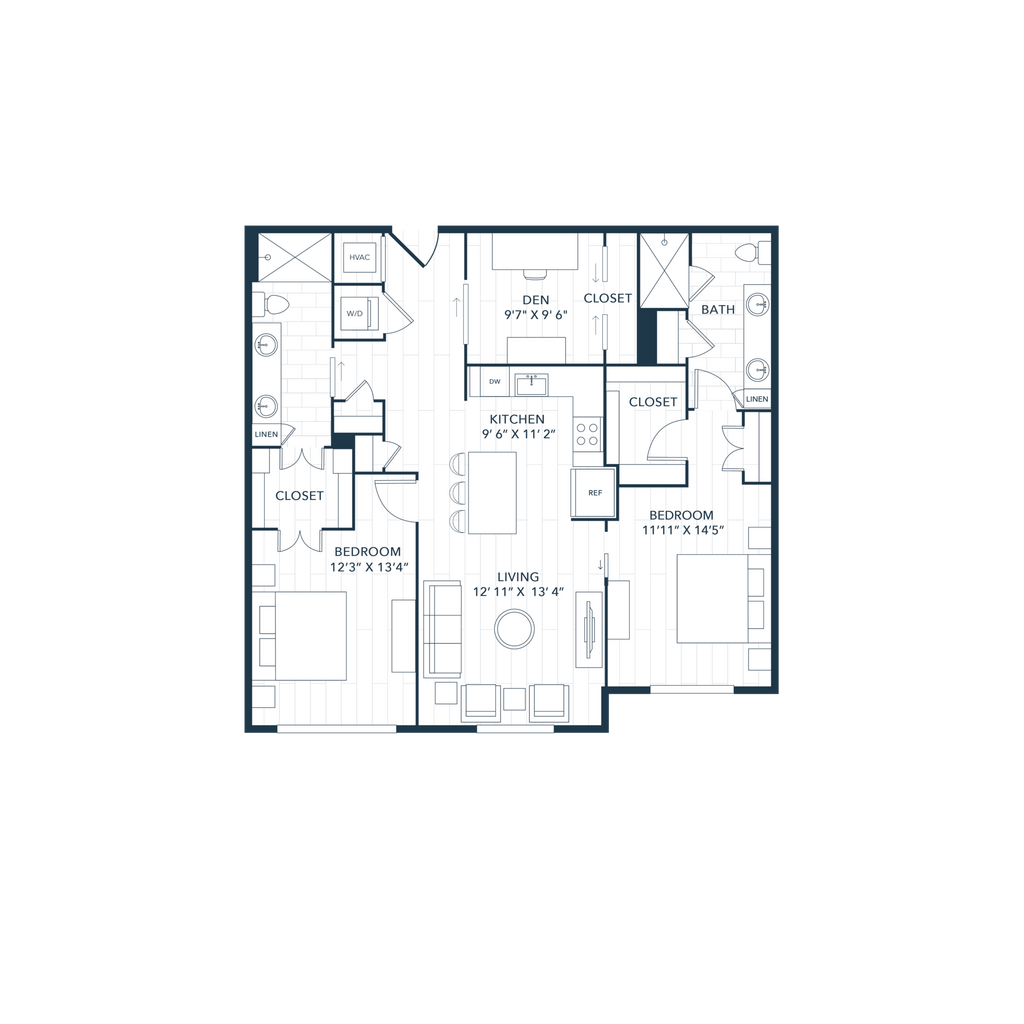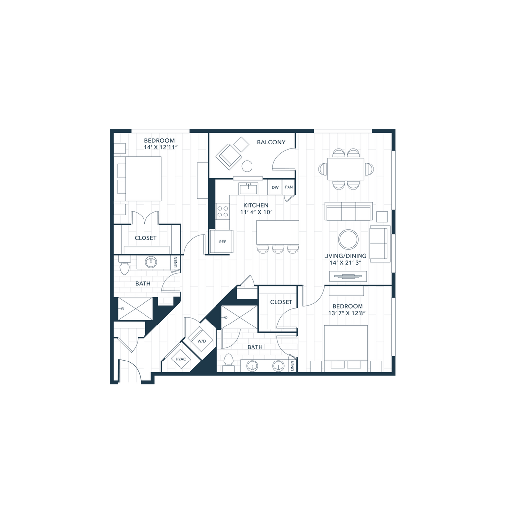 1 Bed, 1 Bath, 640-647 sq ftAvailable NowModel Gallery