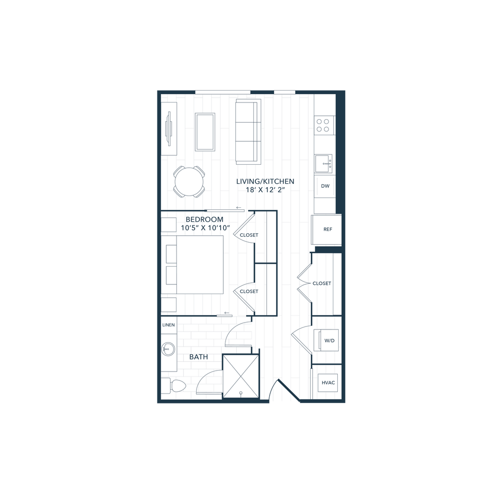Studio, 1 Bath, 483-582 sq ftAvailable NowModel Gallery