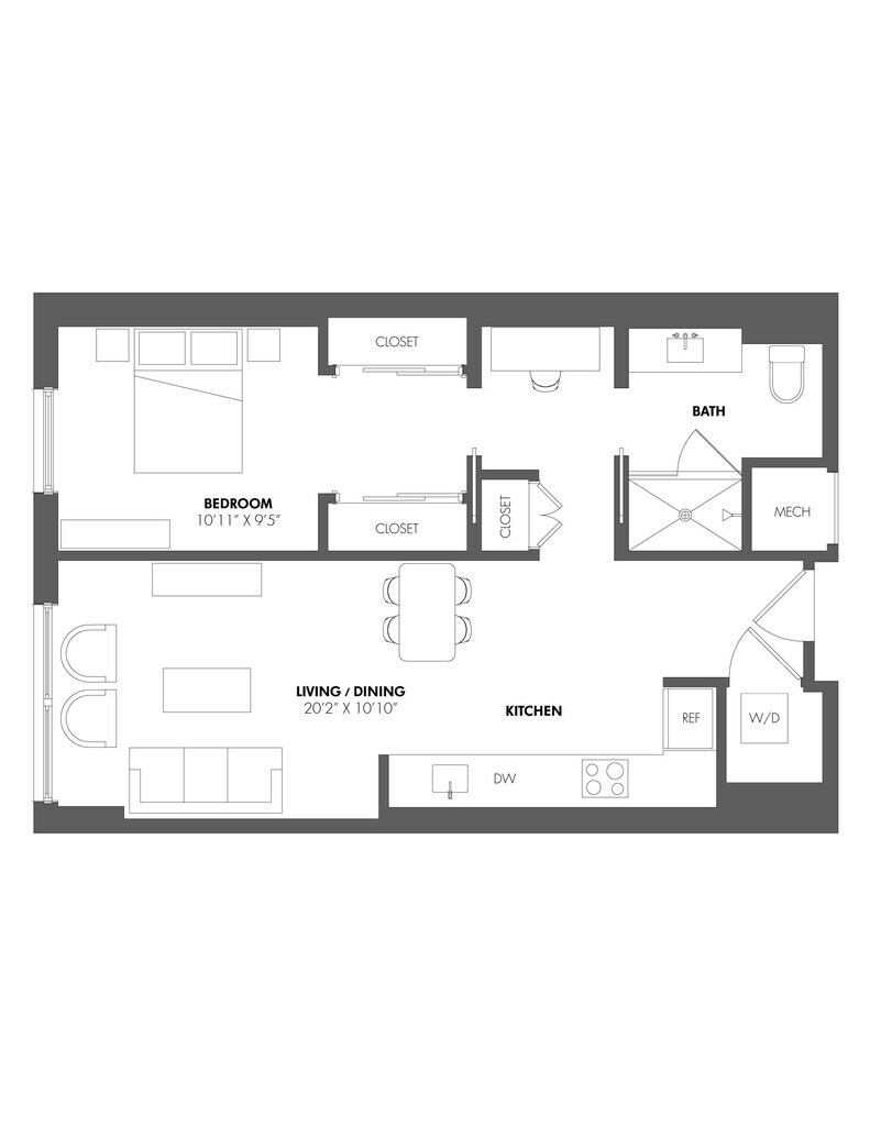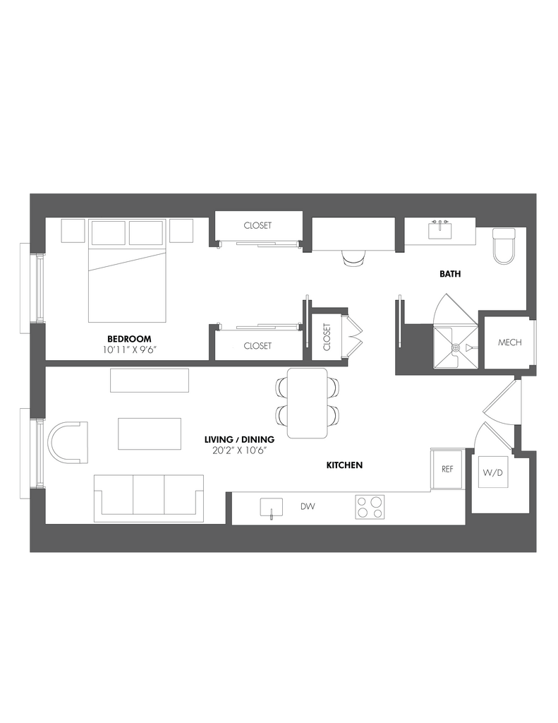 Apartment Model: A1From $3,1981 Bedroom, 1 Bath, 703-794 sq ftAvailable Now![]()