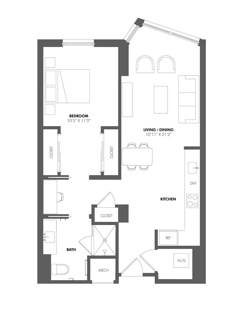 A1 - Floorplan 1 Apartment Unit: 0208Apartment Model: A11 Bedroom, 1 Bath, 743 sq ftAvailable Now![]()