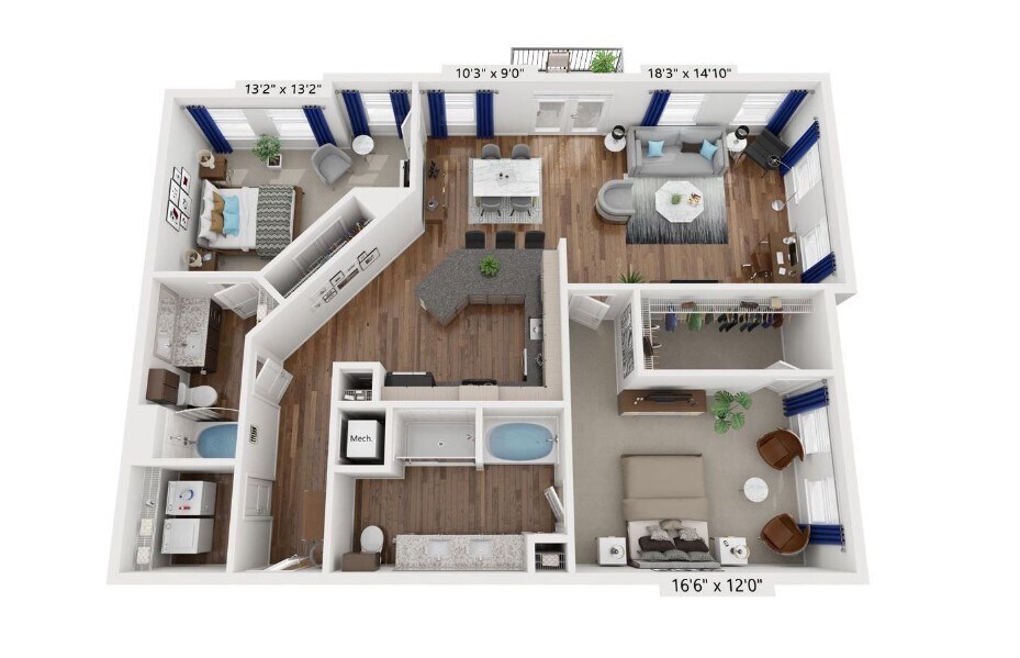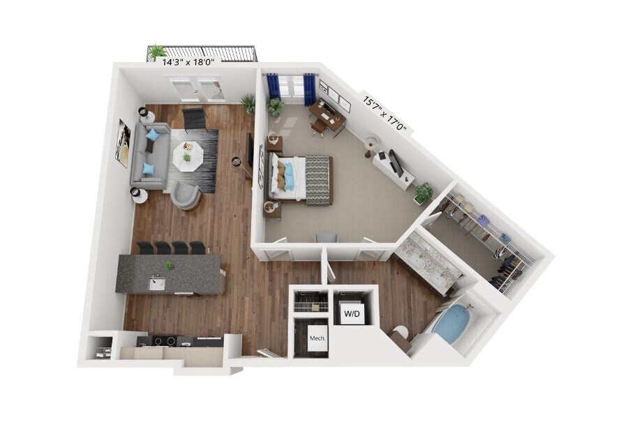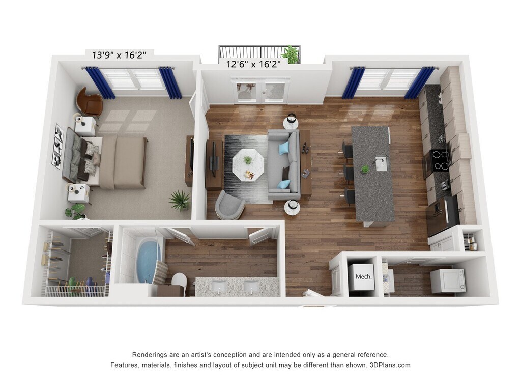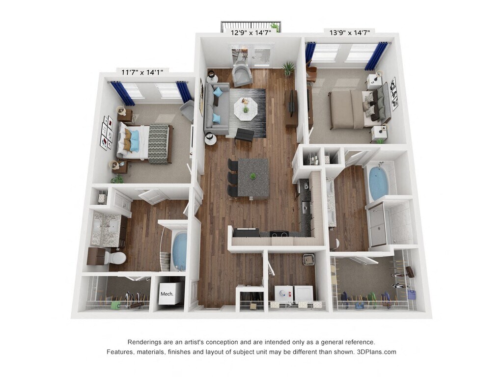 Apartment Model: A3From $1,4791 Bedroom, 1 Bath, 770-866 sq ftAvailable NowFloor plans are artist's rendering. All dimensions are approximate. Actual product and specifications may vary in dimension or detail. Not all features are available in every rental home. Prices and availability are subject to change. Base rent is based on monthly frequency. Additional fees may apply, such as but not limited to package delivery, trash, water, amenities, etc. Deposits vary. Please see a representative for details.