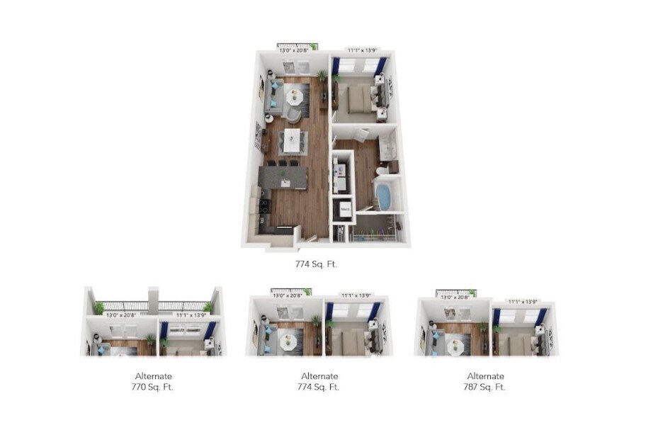 1 Bed, 1 Bath, 770-866 sq ftAvailable NowModel Gallery