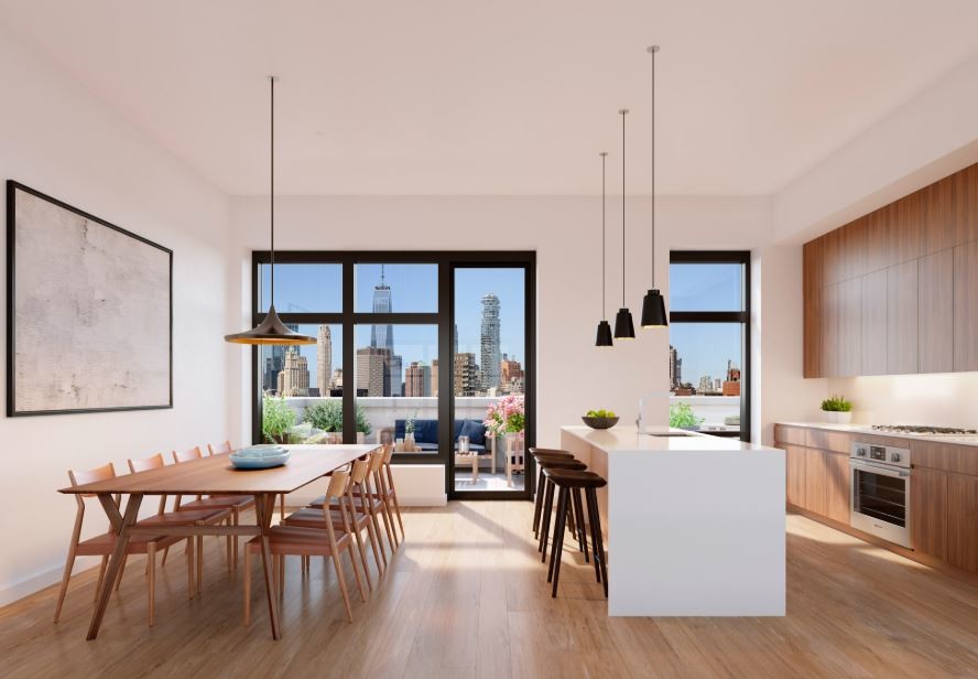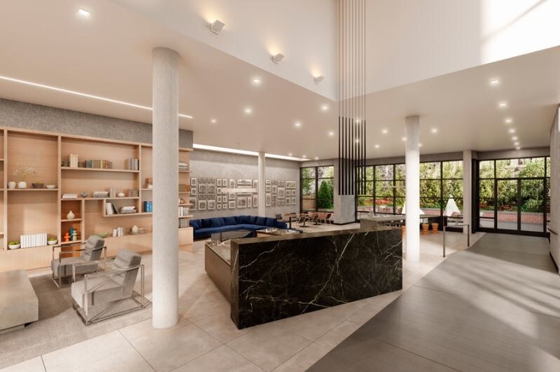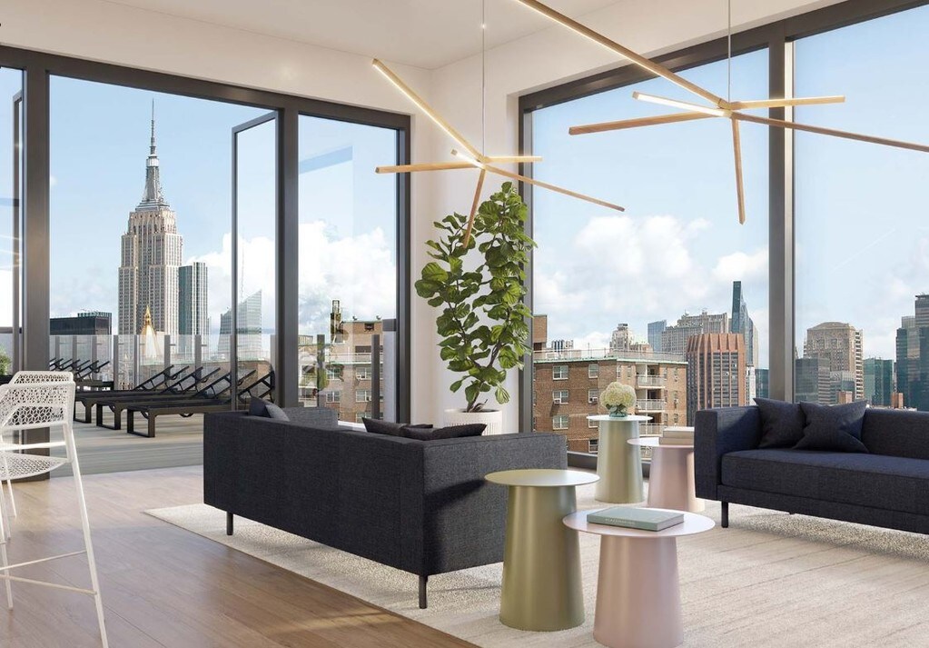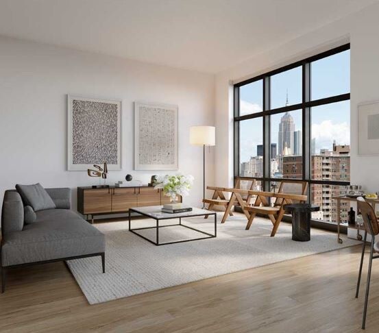 Conceived by renowned architect Stephen B. Jacobs the Sioné is an eclectic fusion of the grit of the lower east side realized by a sophisticated partnership of professionals, bringing together a vision of art, culture, architecture, and distinguished living. The amenity offering at the Sioné has been carefully curated to augment and enhance the lifestyle of its residents. The Sioné features a part-time attended lobby paired with Butterfly MX virtual doorman services to provide a seamless service line inclusive of package handling, access to the building, and the safety of the residents. Common areas are abundant throughout and seek to satisfy a wide range of ever-growing needs. Upon entering the building, residents are greeted by a lobby lounge complete with game tables and a communal workspace with fireside seating. A double height staircase leads to a residents’ lounge featuring a private screening room, kitchenette, game room with billiards, and foosball. Perched atop the Sioné sits a 14th floor residents’ lounge with a dynamic combination of indoor and outdoor spaces. Outside, a beautifully appointed landscaped rooftop outfitted with lounge chairs for sunbathing, misting shower, outdoor screening by the fire, private dining, and BBQ stations, ensure residents’ comfort and enjoyment at the Sioné is paramount to all else. The Sioné also boasts a state-of-the-art gym and fitness facility, outfitted with the latest in techno gym and Peleton equipment for residents to engage in a plethora of the latest programmed classes. The Sioné ensures every opportunity for its residents to pursue a holistic approach to their work, play, and overall quality of life. Residences at The Sioné have been designed with the most discerning of tastes in mind, and speak to the level of craftsmanship and attention to detail expected from a building of its caliber. The flooring in each unit is wide plank, European white oak with a clear matte finish. The ambiance and comfort of each residence is controlled by a combination of a NEST thermostat, and Schelage keyless entry system. Kitchens are appointed with LineaDecor walnut designed cabinets, Bosh appliances and Bloomberg refrigerators. All appliances have been panelized to maintain the elegant look and feel of this truly elevated finish package. Countertops and backsplashes are a SileStone white slab complimented by Grohe fixtures. Bathrooms at the Sioné are also outfitted with LineaDecor walnut designed cabinets as found in the kitchens, as well as Grohe, Moen & Kohler hardware and fixtures. Every residence at The Sioné comes with a Bosch washer and dryer.