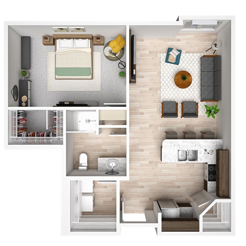 Apartment Model: E1From $995Studio, 1 Bath, 487 sq ftAvailable August 1, 2026![]()