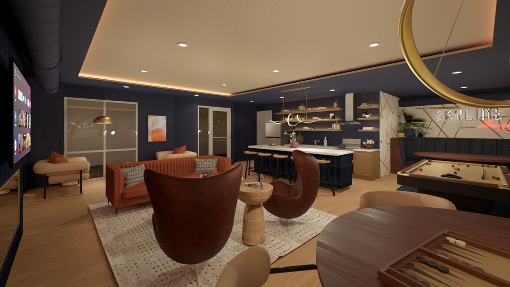 Located in the center of the NDSU community, The Skyline is designed with college life in mind. Choose from Studio through 3-Bedroom apartments, each featuring spacious kitchens and the convenience of in-unit laundry. Whether you’re studying, relaxing, or hanging out with friends, our all-inclusive amenities have you covered. Enjoy the study room, reading room with massage chair, a fully equipped fitness center & sauna, and lobby space with coffee bar perfect for socializing. Take in the views from our rooftop patio while grilling or playing games, or unwind next to the fireplace watching the game. The Clubhouse offers a cozy spot to read by the fire, challenge friends to a game of pool, play a board game, enjoy some food with plenty of room for hosting. Experience Elevated Living at The Skyline—call today to secure your spot before it’s gone.