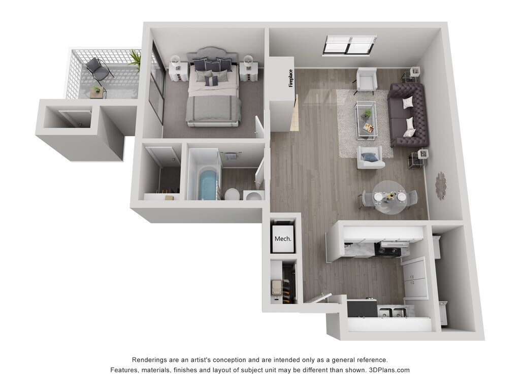 Studio, 1 Bath, 580 sq ftAvailable NowModel Gallery