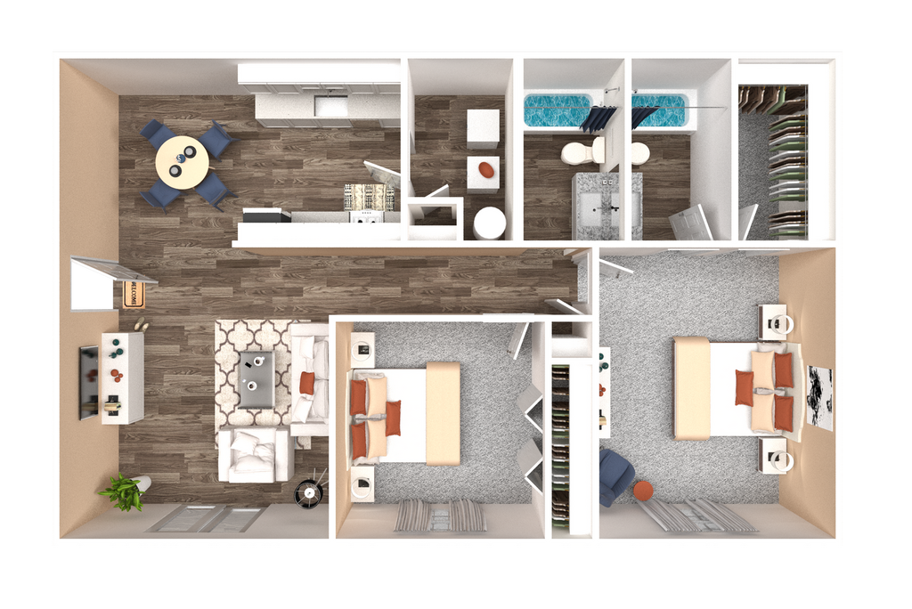 2 Beds, 2 Baths, 1025 sq ftAvailable NowModel Gallery