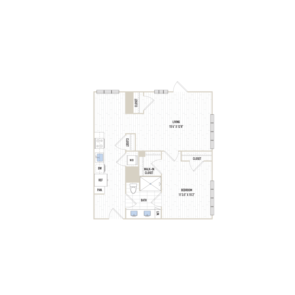 Studio, 1 Bath, 468-473 sq ftTotal Monthly PriceAvailable NowModel Gallery