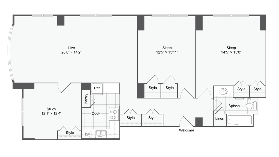 Studio, 1 Bath, 510 sq ftAvailable August 16, 2026Model Gallery