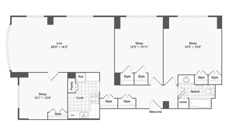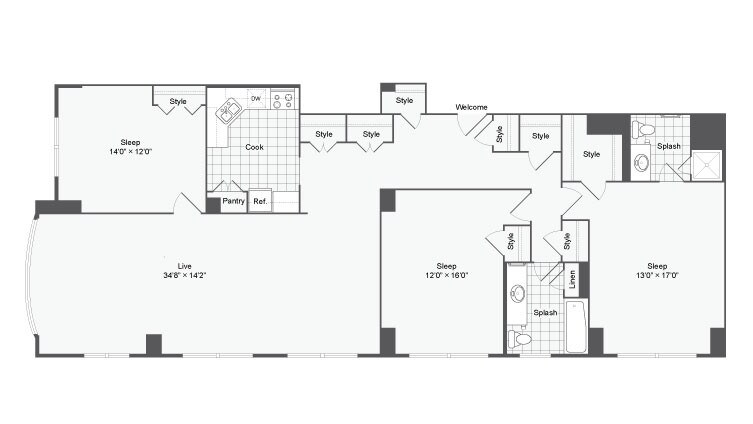 1 Bed, 1 Bath, 882 sq ftAvailable August 16, 2026Model Gallery