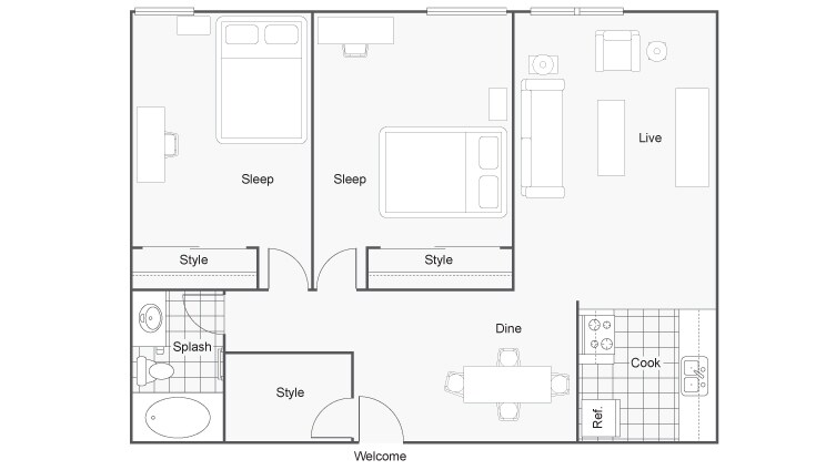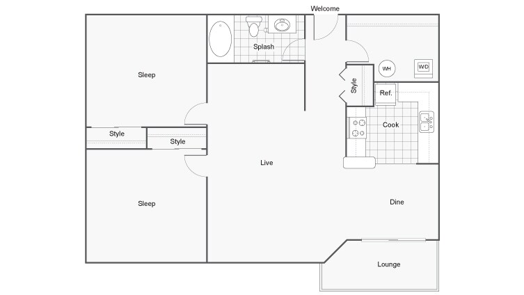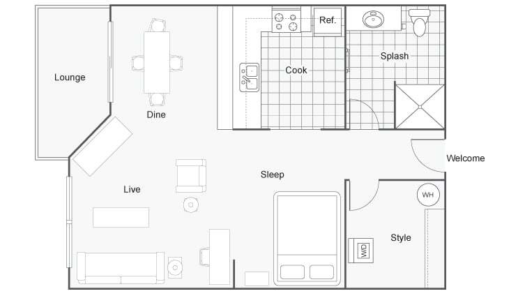 1 Bed, 1 Bath, 600 sq ftAvailable NowModel Gallery