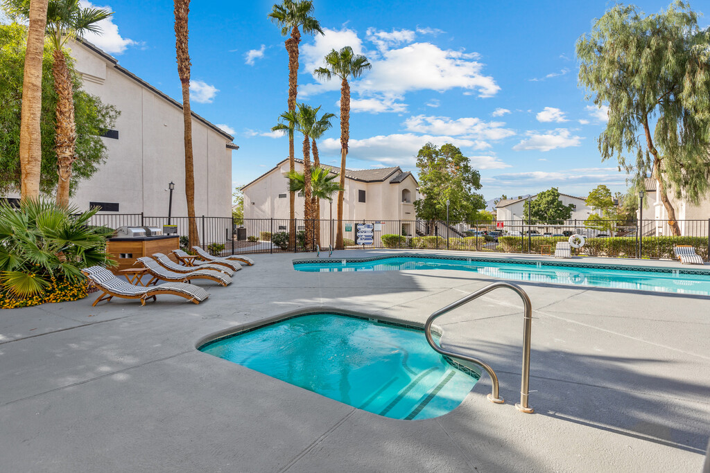The Solena Apartments has 5 parks within 9.0 miles, including The Old Mormon Fort State Historical Park , Spring Mountain National Recreation Area, Spring Mountain Ranch, Bellagio Conservatory Botanical Gardens, and Flamingo Wildlife Habitat.