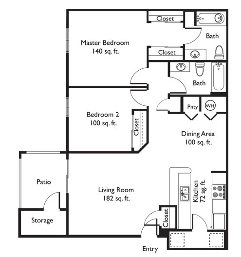 Apartment Model: 2 bed 2 bath2 Bedroom, 2 Bath, 1068 sq ftUnavailable2 bed 2 bath - Floorplan 1 3 Bedrooms