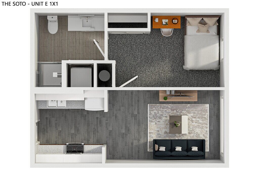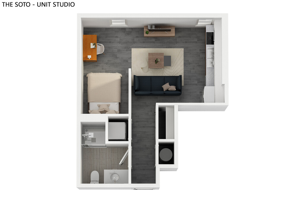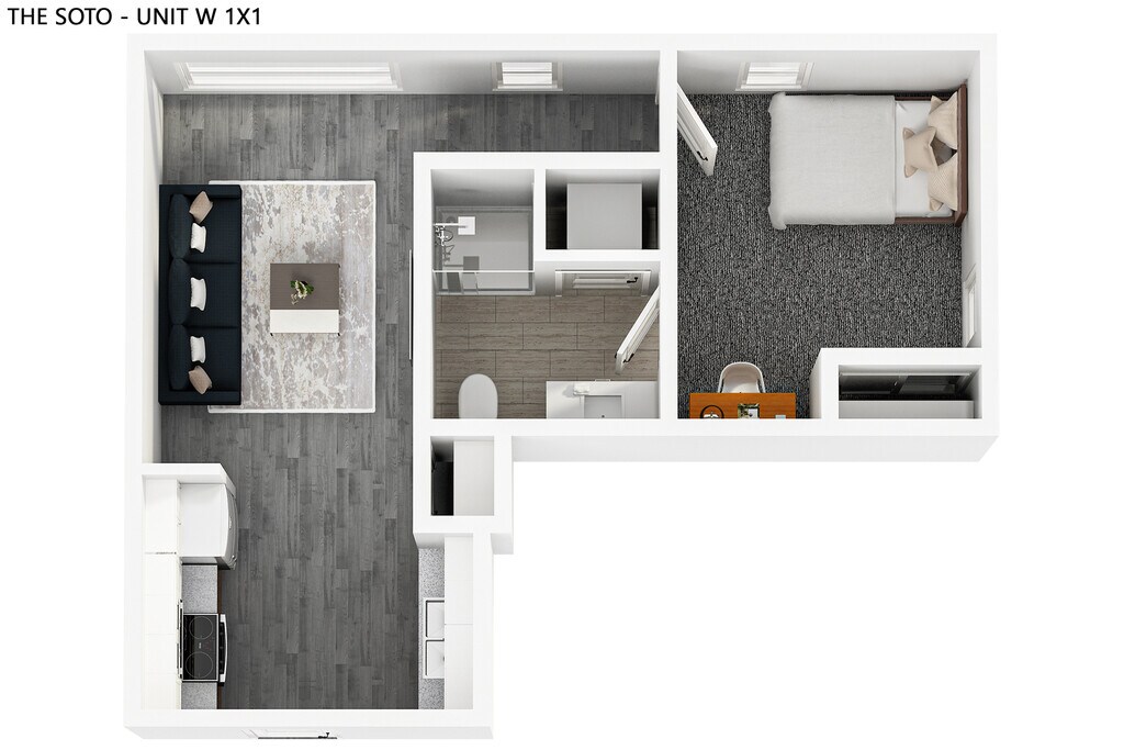 The Soto offers Studio to 4 Bedroom apartments starting from $930 and having 396–1,252 sq ft. Here is the current pricing and availability: