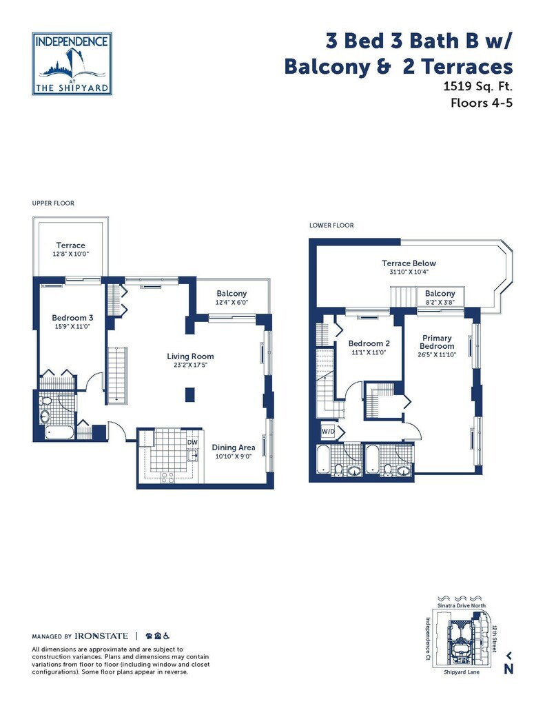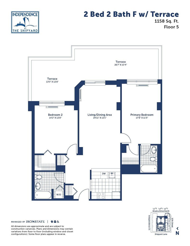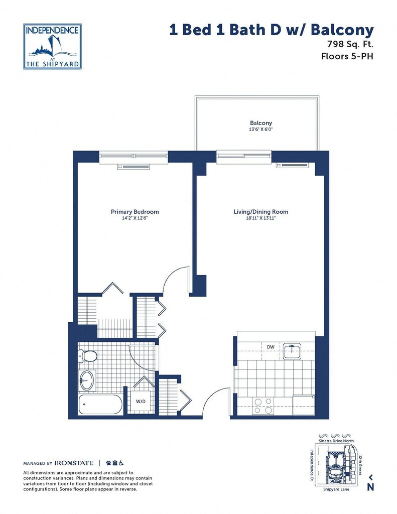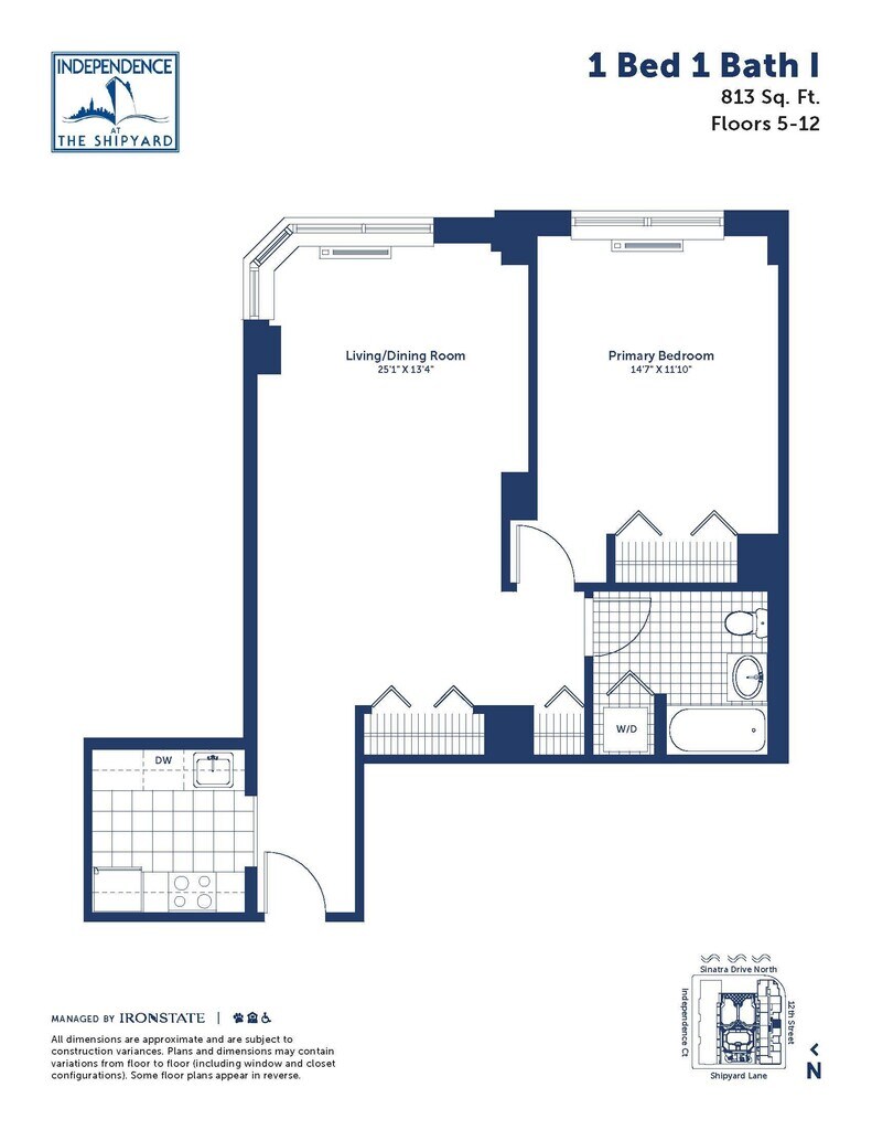 The South Independence sits in the heart of The Shipyard, Hoboken's most coveted neighborhood, with breathtaking views of the Hudson River, New York Harbor, and the Manhattan skyline. Residents have access to an impressive array of amenities at The Shipyard, including a fabulous waterfront park, a state-of-the-art fitness center, two rooftop pools, sun decks, children's play areas and much more.