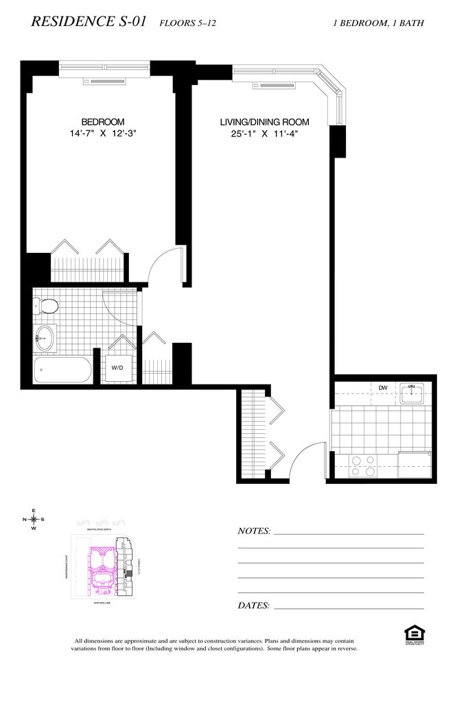 1 Bed 1 Bath N - Floorplan 1 1 Bed 1 Bath O