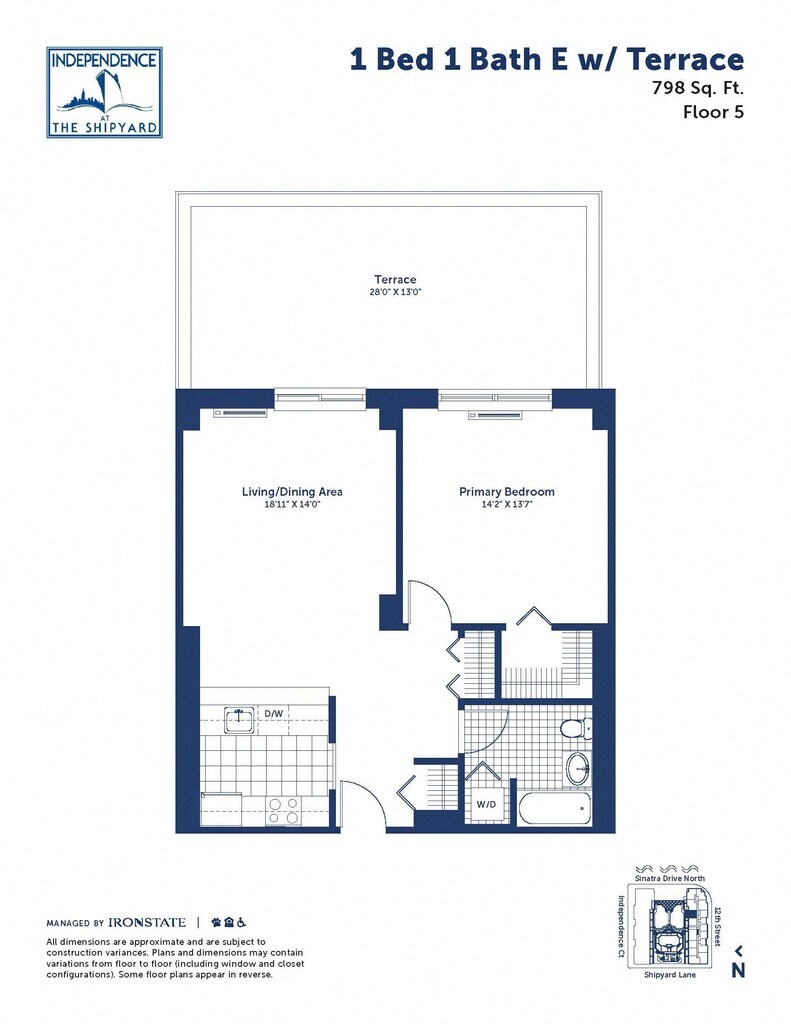1 Bed 1 Bath E With Terrace - Floorplan 1 1 Bed 1 Bath F With Balcony