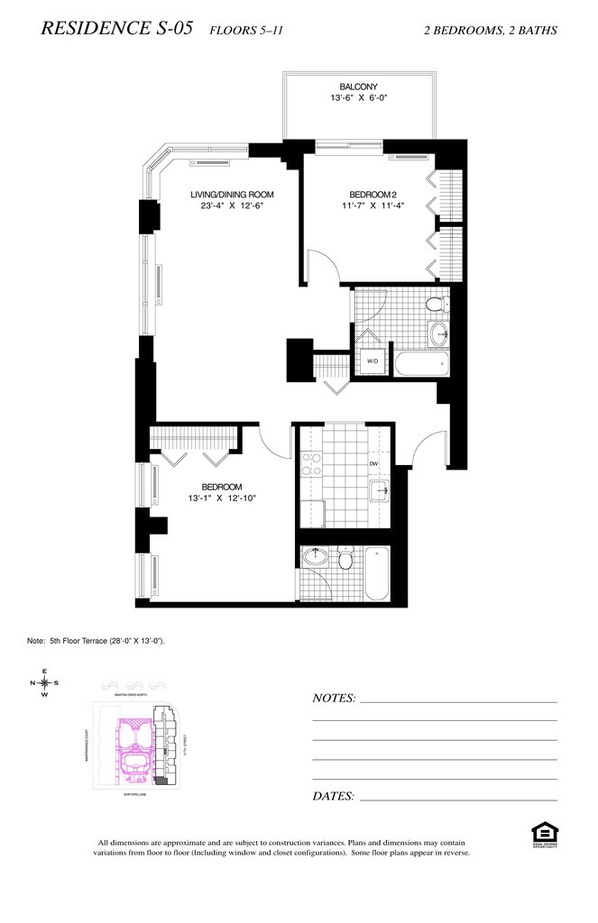 2 Bed 2 Bath A With Balcony and Terrace - Floorplan 1 2 Bed 2 Bath B With Terrace