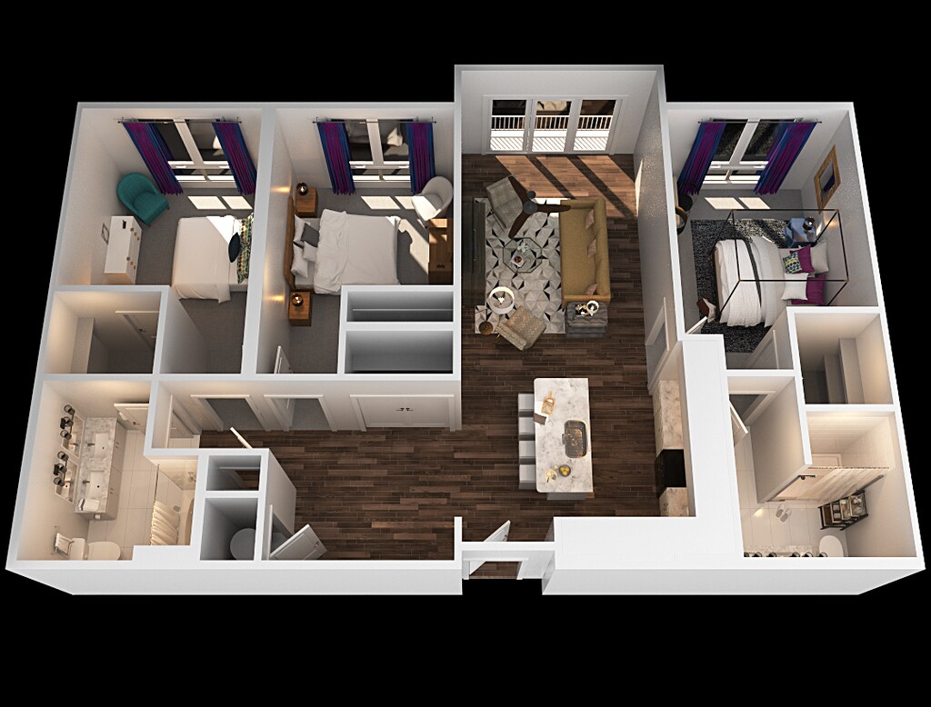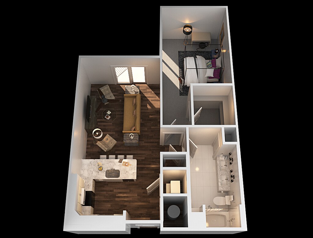 1 Bed, 1 Bath, 885 sq ftModel Gallery