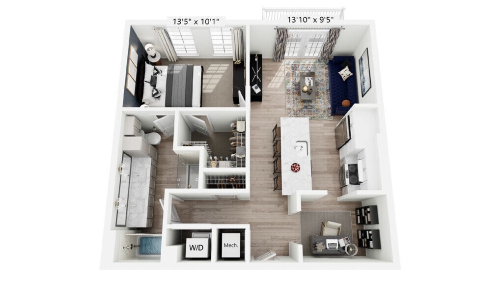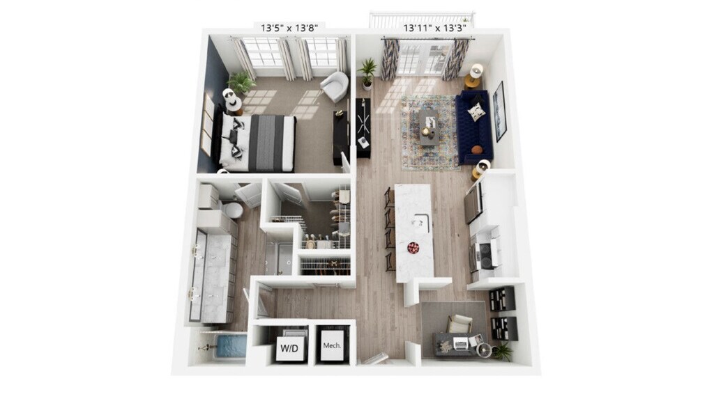 Apartment Model: A1.3$1,5981 Bedroom, 1 Bath, 696 sq ftAvailable Now![]()