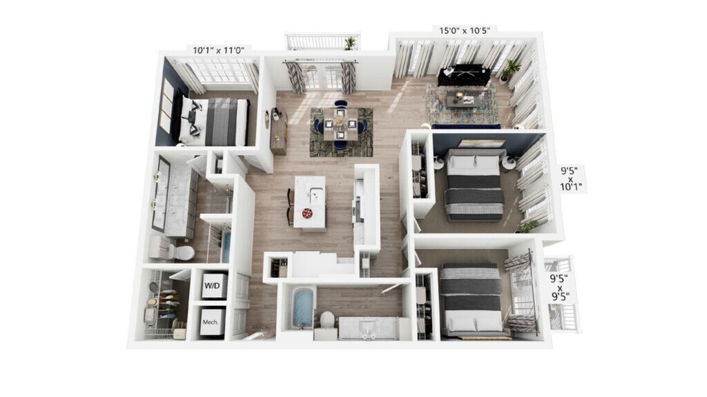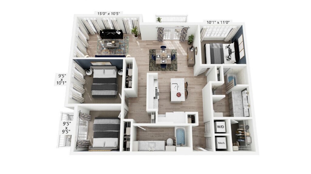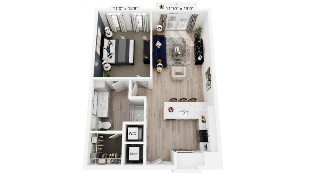 Apartment Model: A1.1From $1,6201 Bedroom, 1 Bath, 678 sq ftAvailable Now![]()