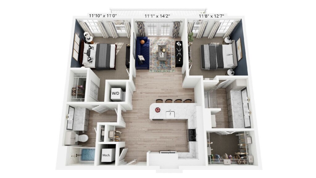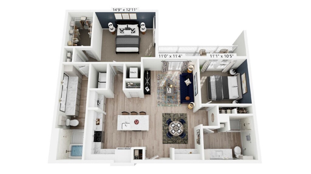 Apartment Model: A2.1From $1,6471 Bedroom, 1 Bath, 758 sq ftAvailable Now![]()