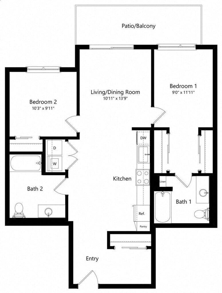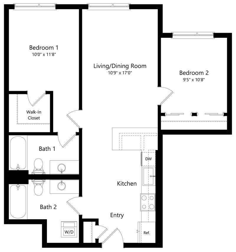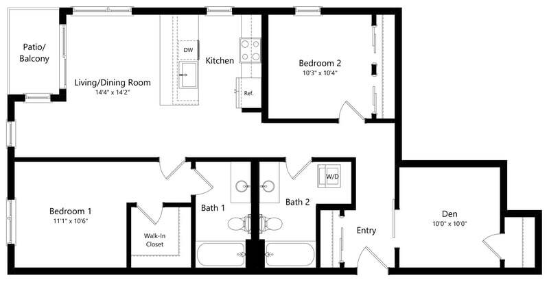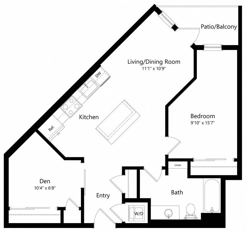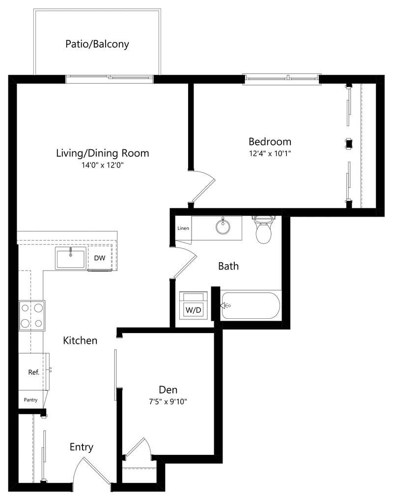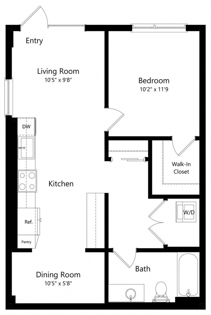 U5 - Floorplan 1 Apartment Unit: 304GApartment Model: U51 Bedroom, 1 Bath, 595 sq ftAvailable NowFloorplan U2
