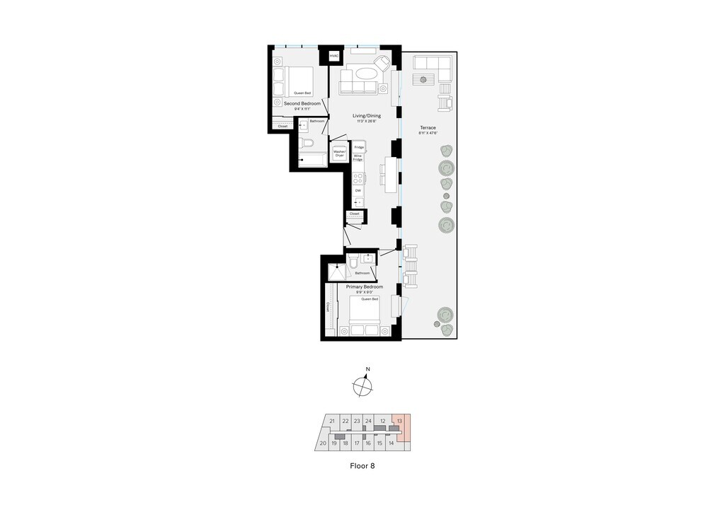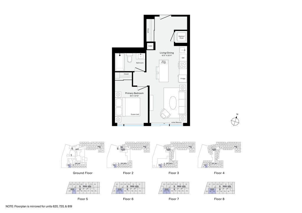 A5 - Floorplan Apartment Unit: W211Apartment Model: A5$2,1761 Bedroom, 1 Bath, 525 sq ftAvailable May 1, 2026Apartment Unit: W313Apartment Model: A5$2,2411 Bedroom, 1 Bath, 525 sq ftAvailable May 1, 2026Floorplan A8