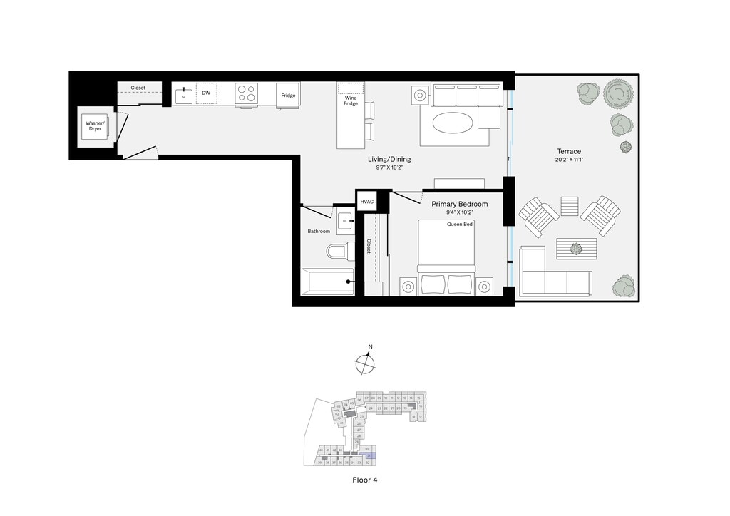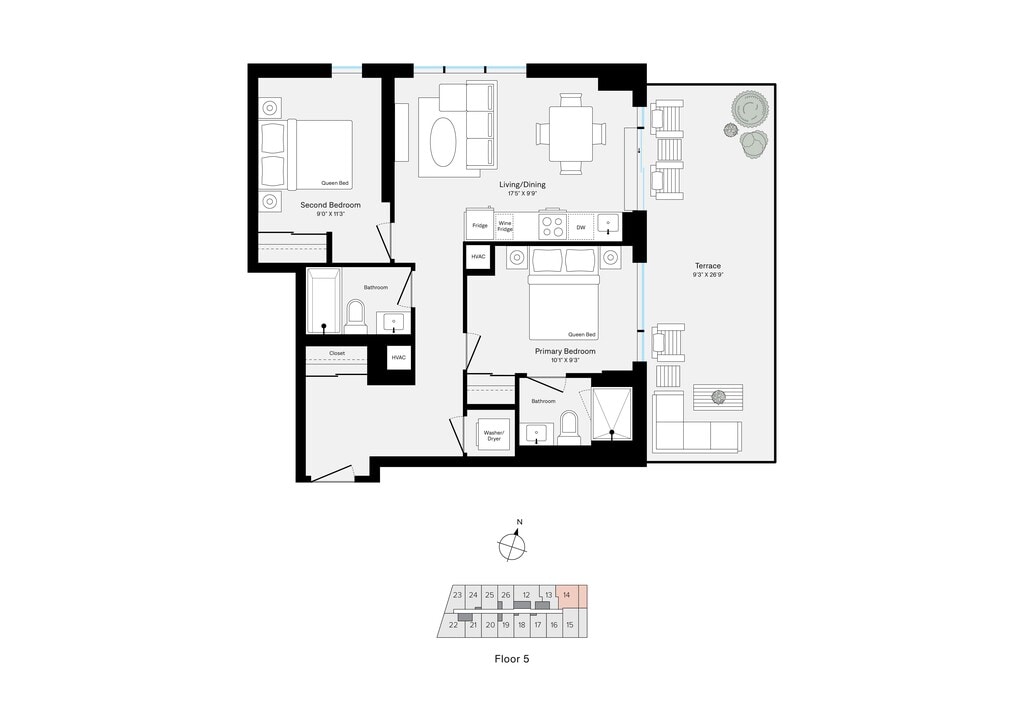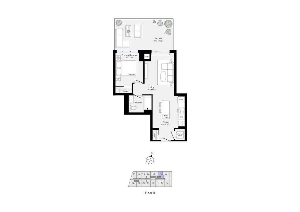 Apartment Model: A5From $2,1761 Bedroom, 1 Bath, 525 sq ftAvailable May 1, 2026Floor plans are artist's rendering. All dimensions are approximate. Actual product and specifications may vary in dimension or detail. Not all features are available in every rental home. Please see a representative for details.