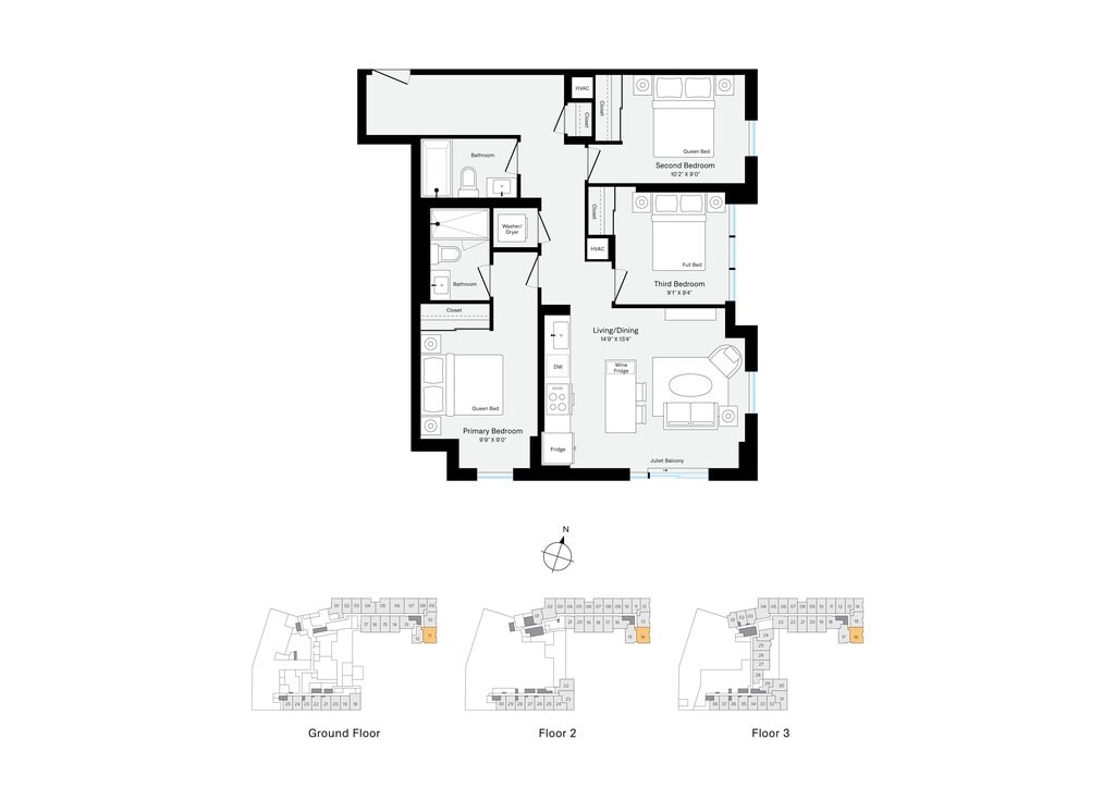 1 Bedroom to 3 Bedroom Apartments at The Spoke currently range from $2,176 to $4,298
