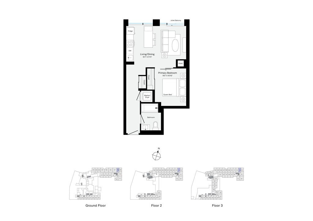 1 Bed, 1 Bath, 496 sq ftTotal Monthly PriceAvailable May 1Total Monthly Price