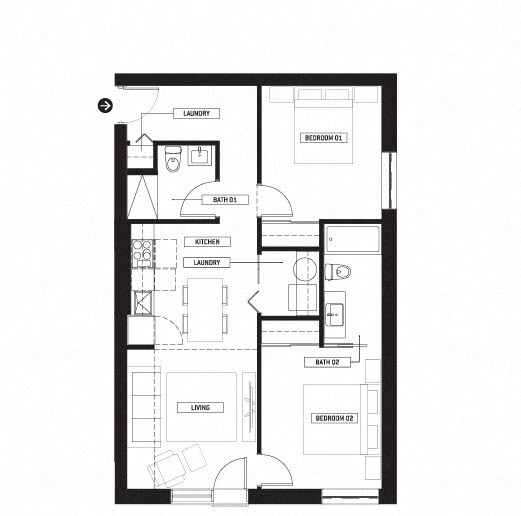 2 Bedroom - Floorplan 1 ![]()