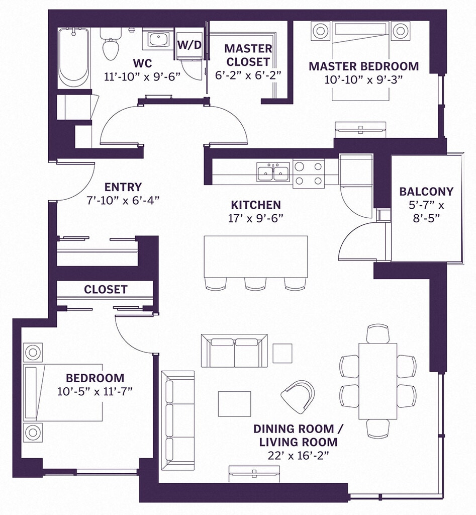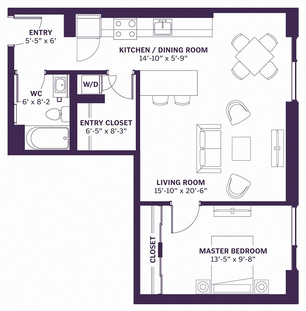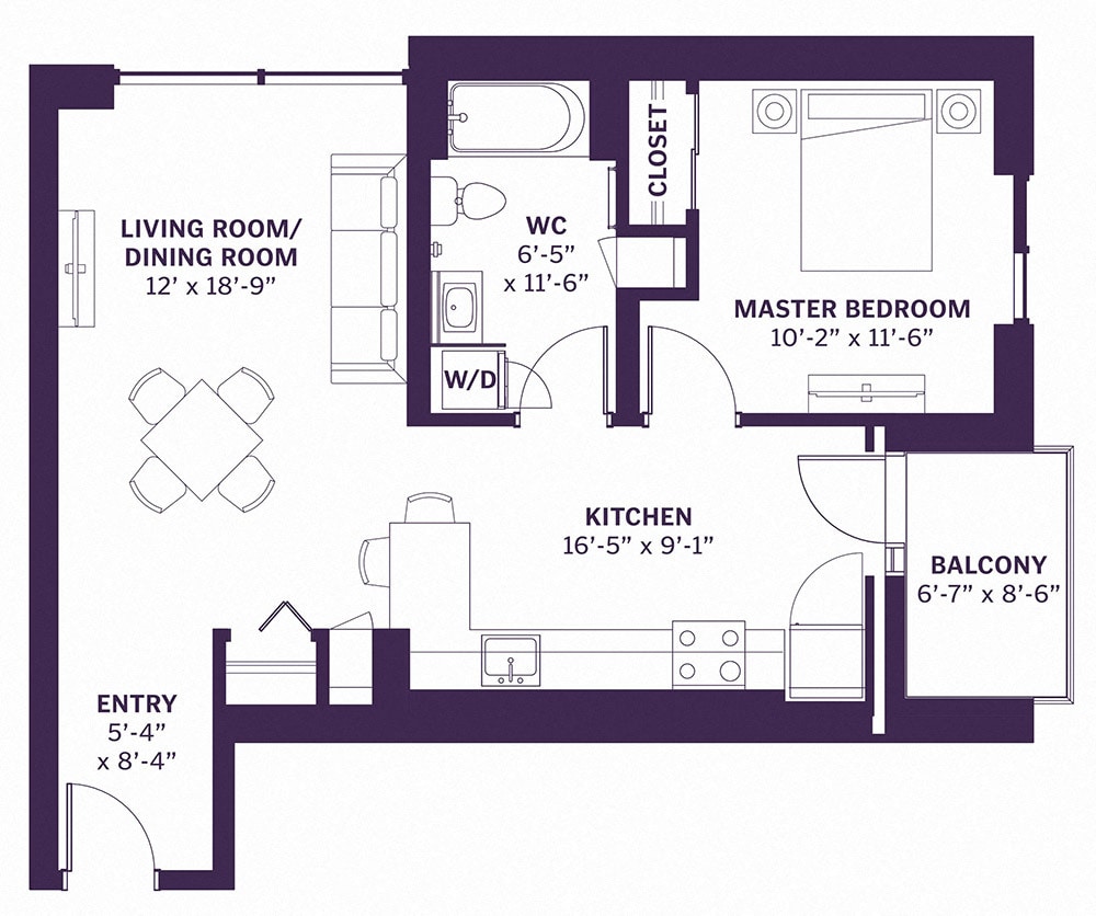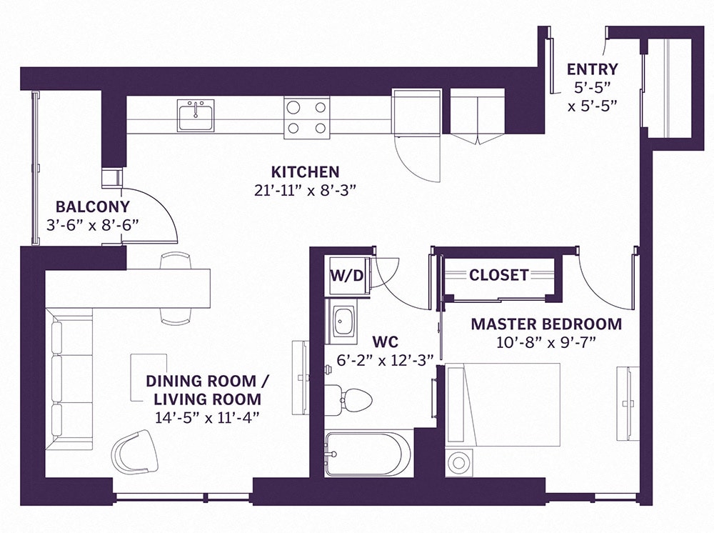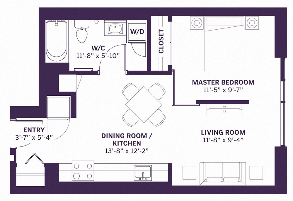 1 Bed, 1 Bath, 690 sq ftAvailable NowLargest 1 BedroomThis is the largest 1 Bedroom at this PropertyModel Gallery