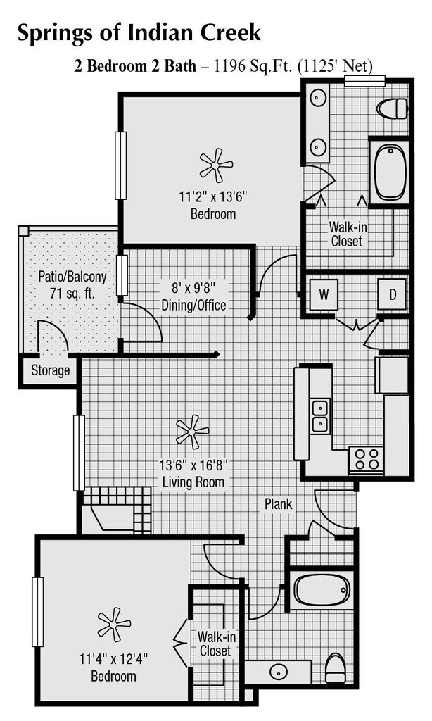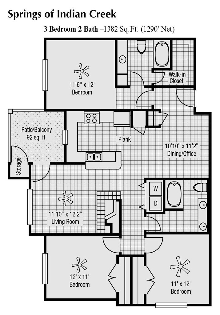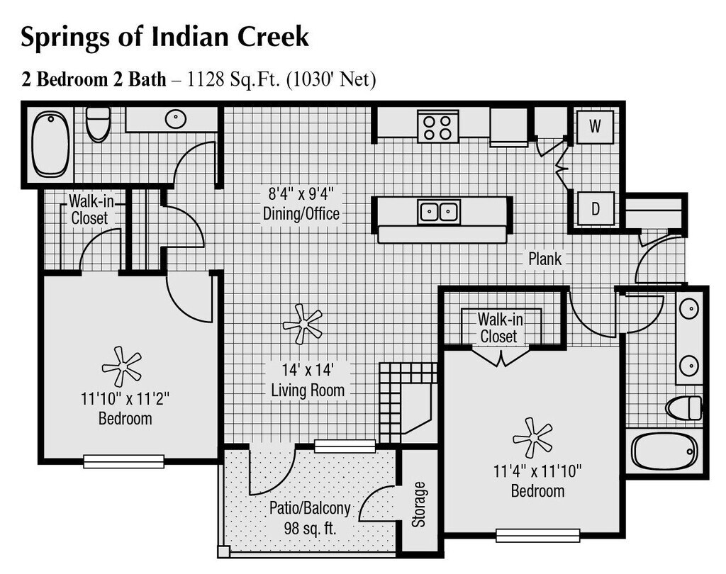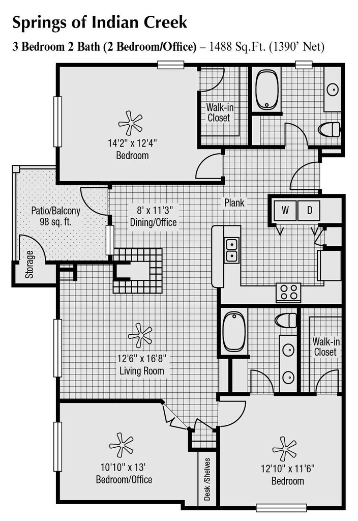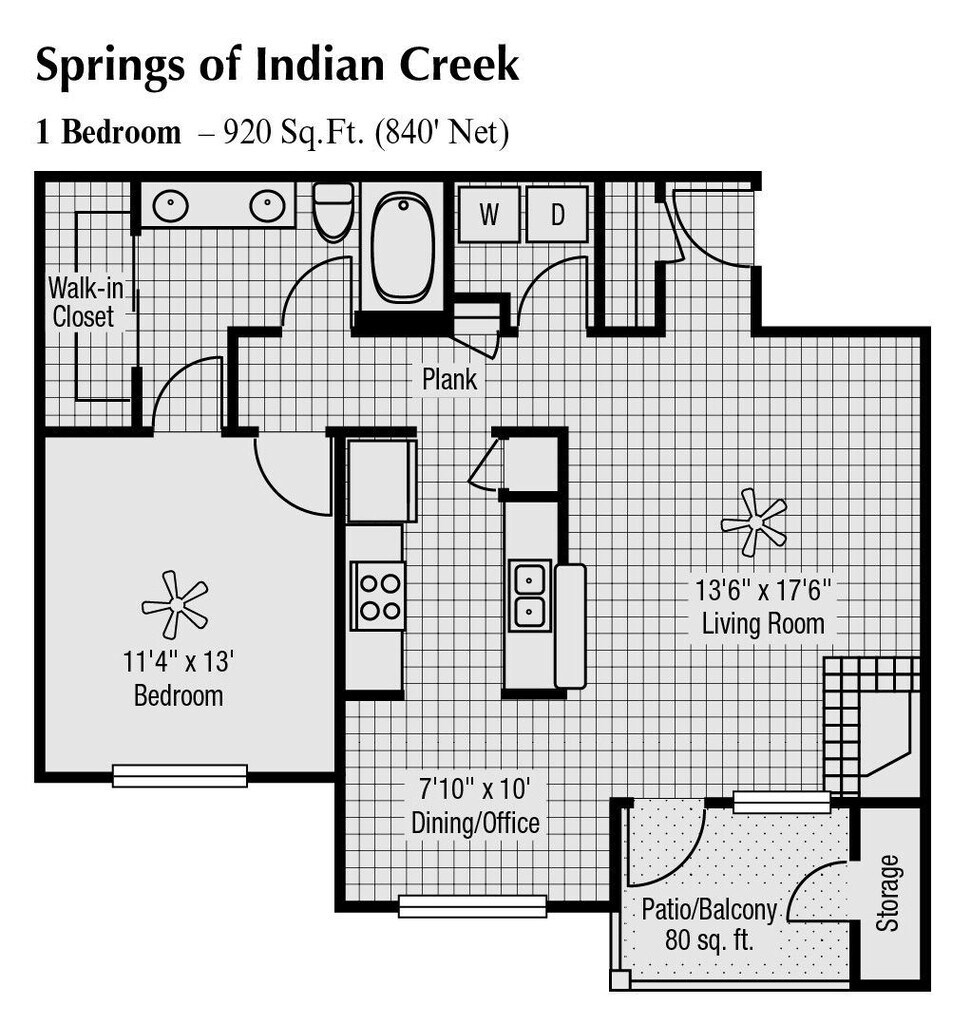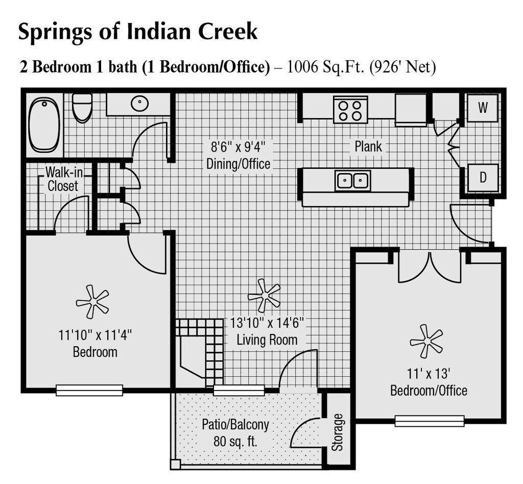 The Springs Of Indian Creek offers 1 to 3 Bedroom apartments starting from $1,192 and having 659–1,390 sq ft. Here is the current pricing and availability: