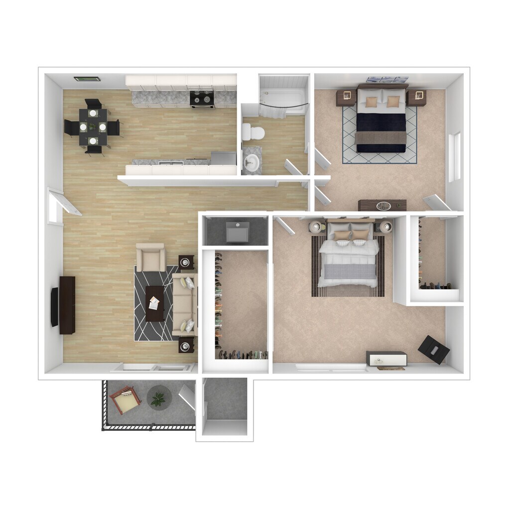 2 Beds, 1 Bath, 840 sq ftAvailable NowModel Gallery